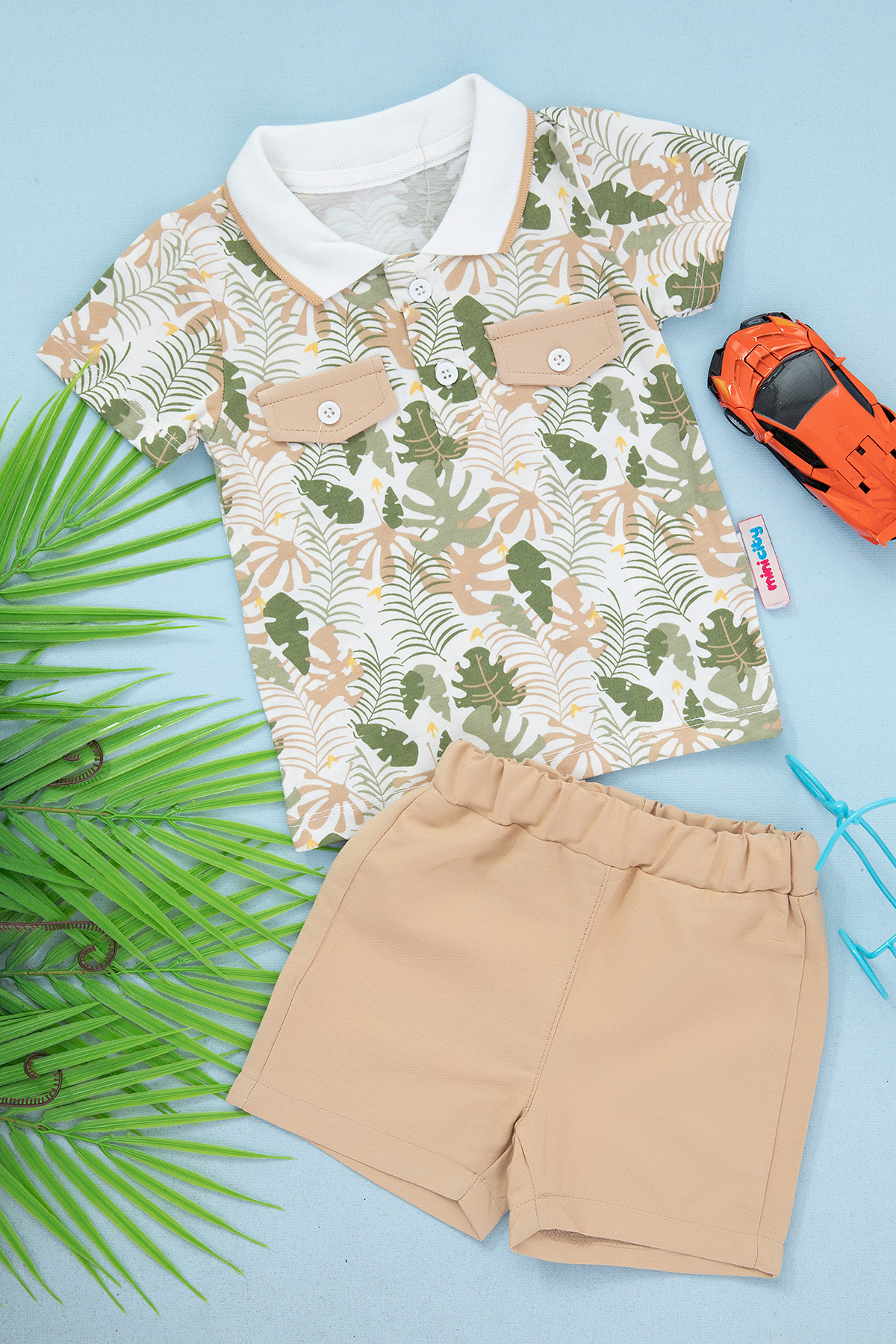 Erkek Bebek Yaprak Baskılı Şortlu Takım - 222020190 (6-24 Ay)