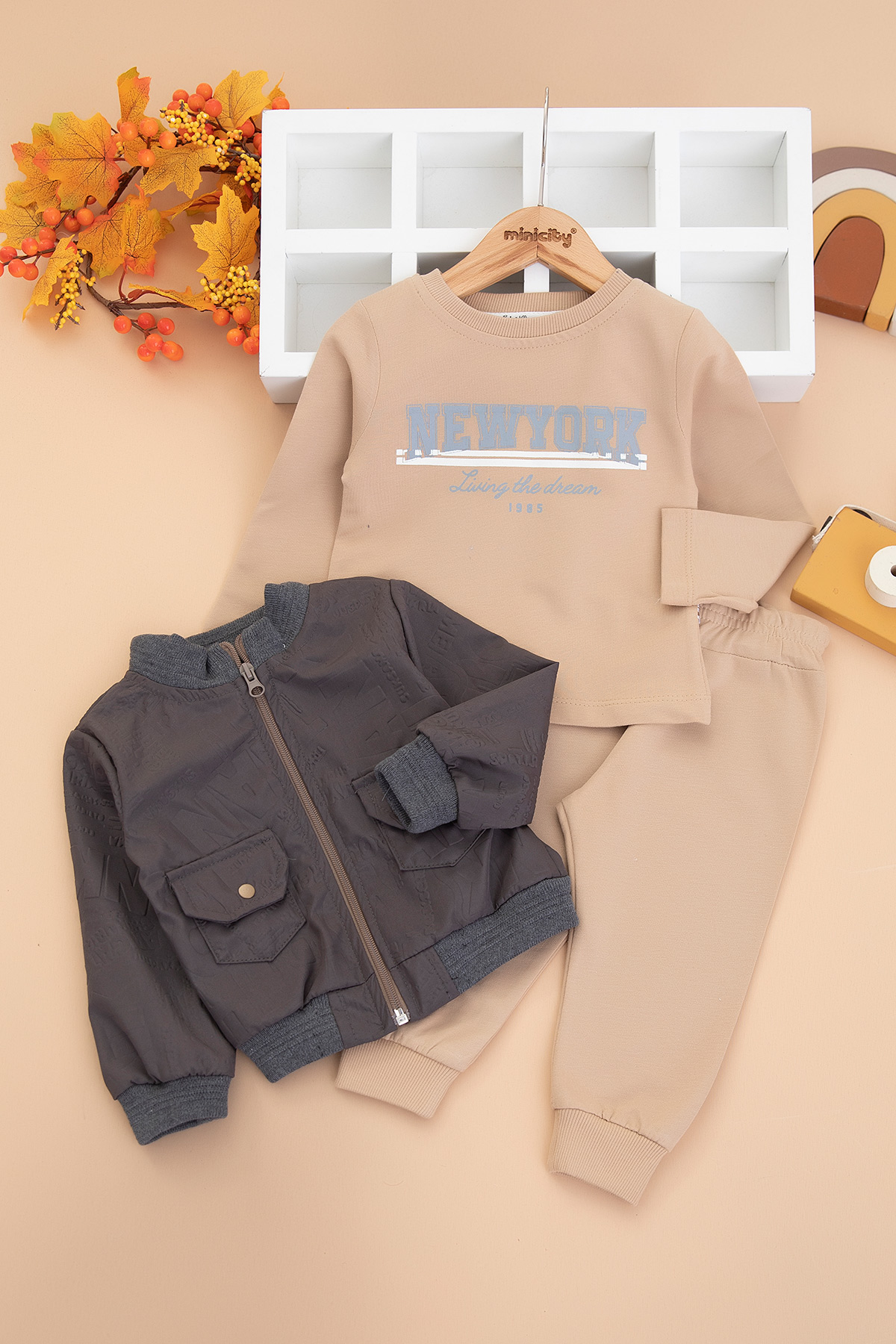 Erkek Bebek Yazı Baskılı Montlu Takım - 90014 (6-24 Ay)