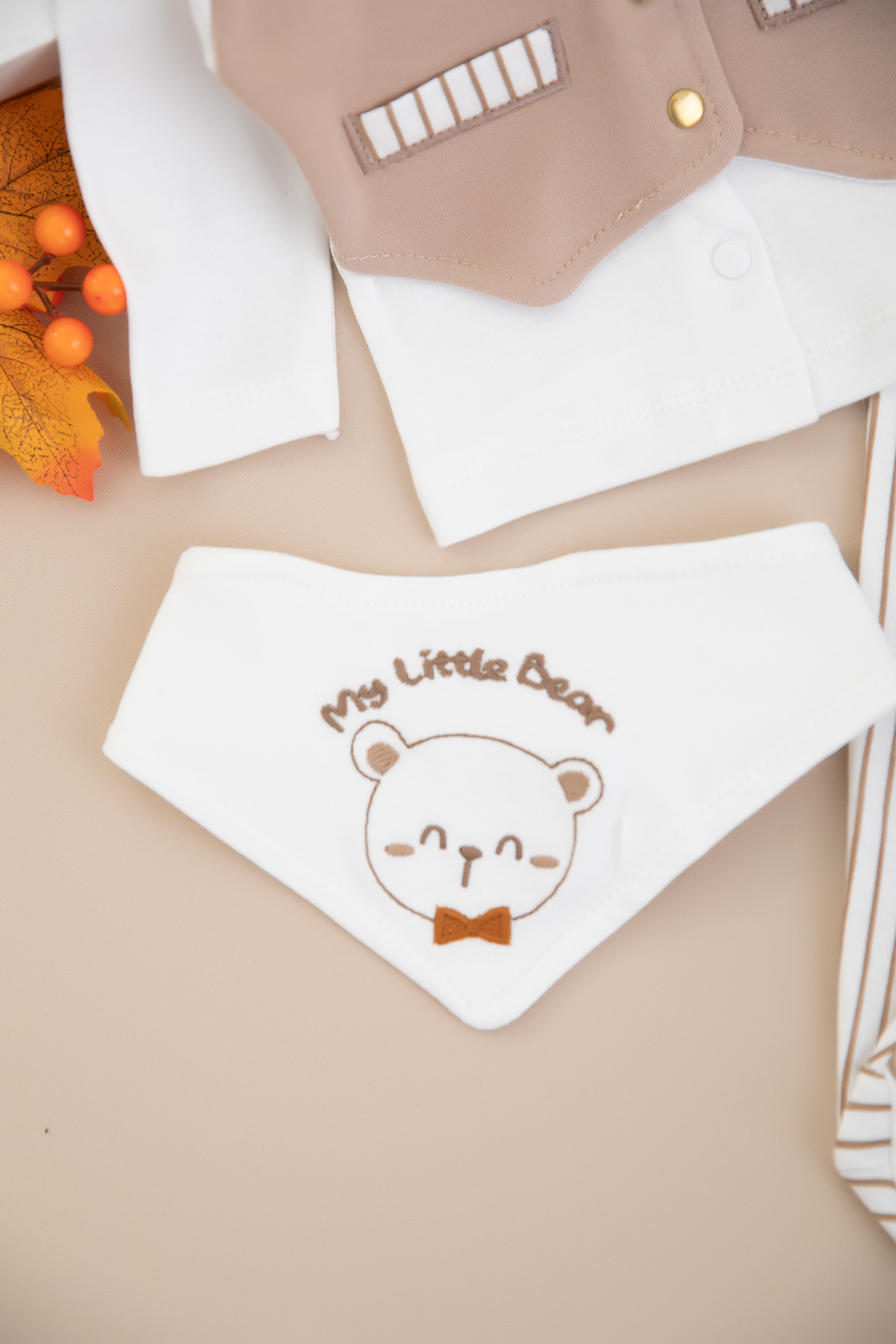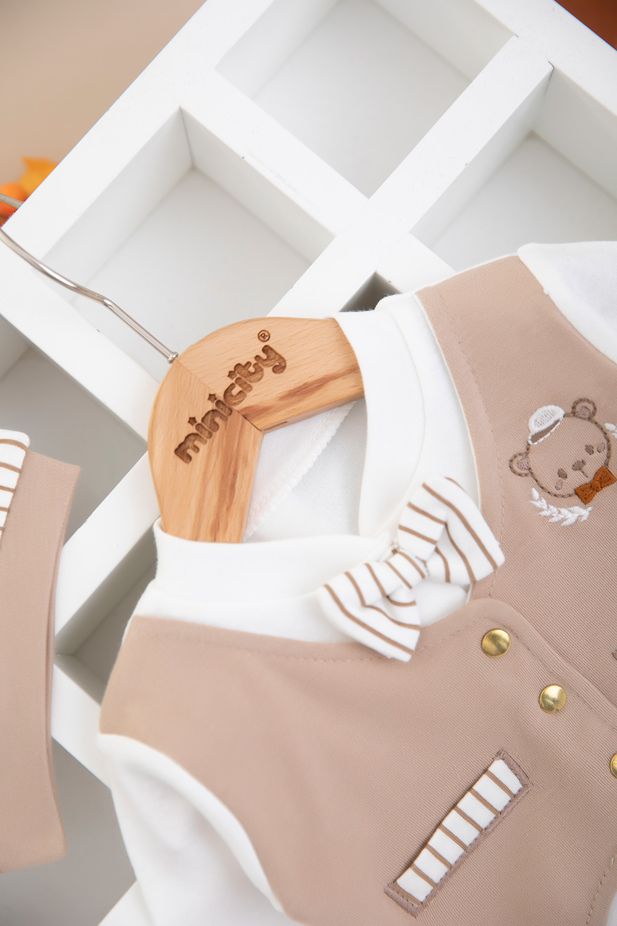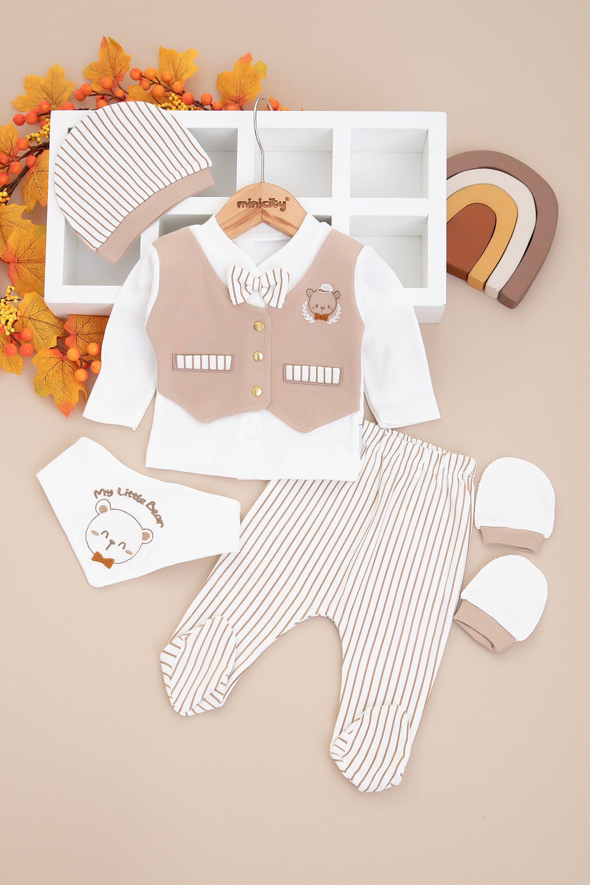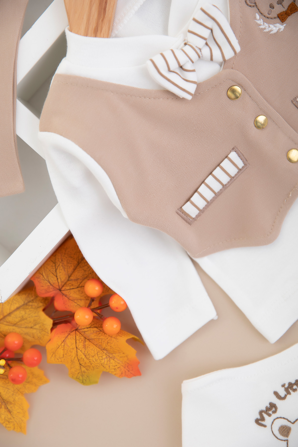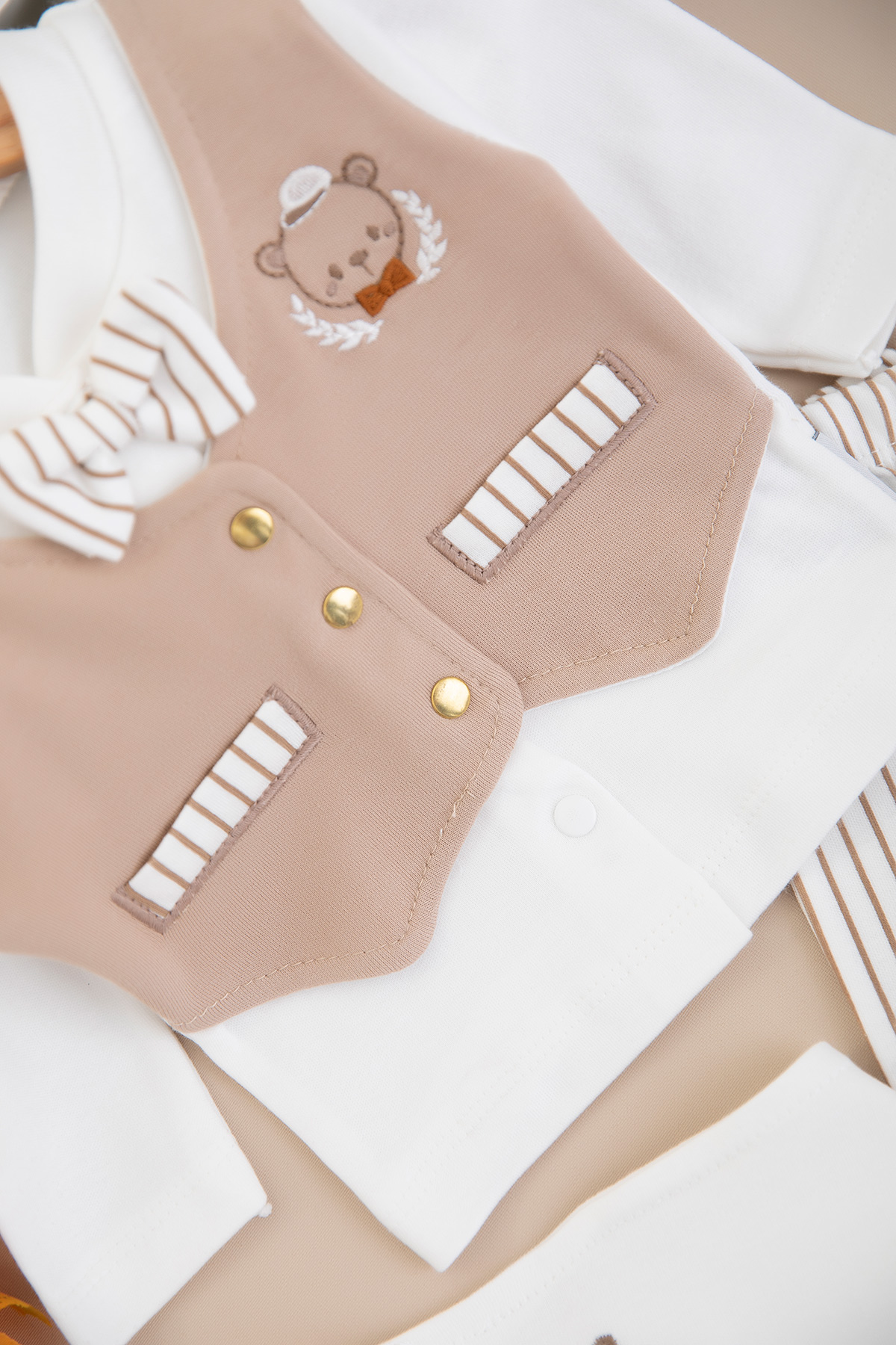 Erkek Bebek Yelekli Papyonlu 5`Li Zıbın Seti