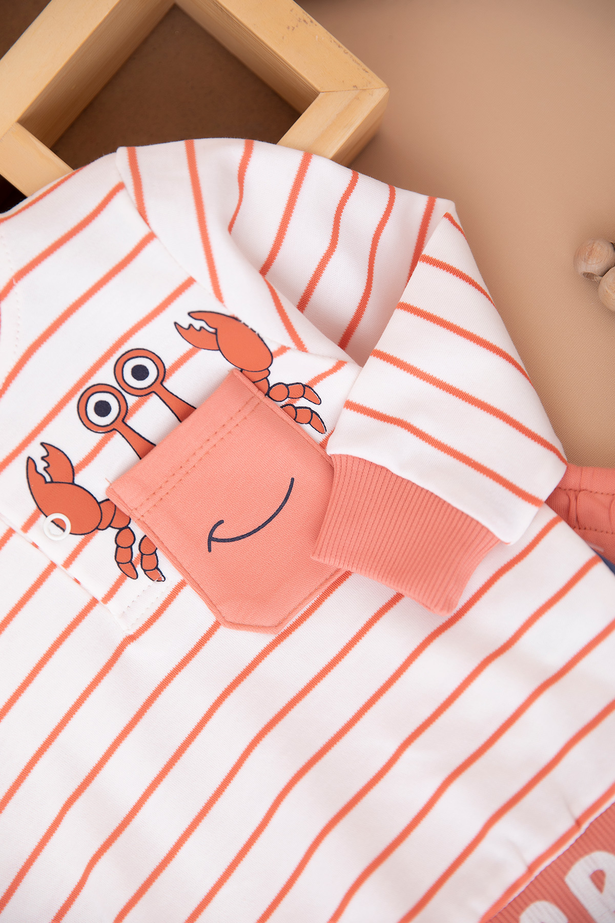 Erkek Bebek Yengeç Baskılı Çizgili Takım - 25610 (9-24 Ay)