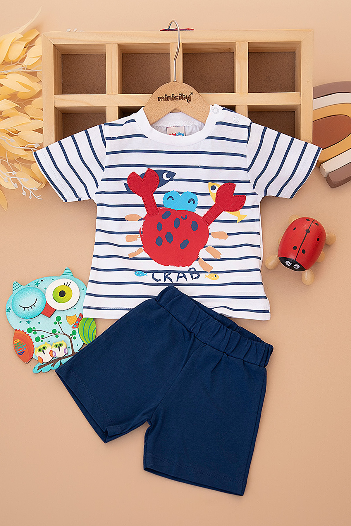 Erkek Bebek Yengeç Baskılı Şortlu Takım - 25302 (9-24 Ay)