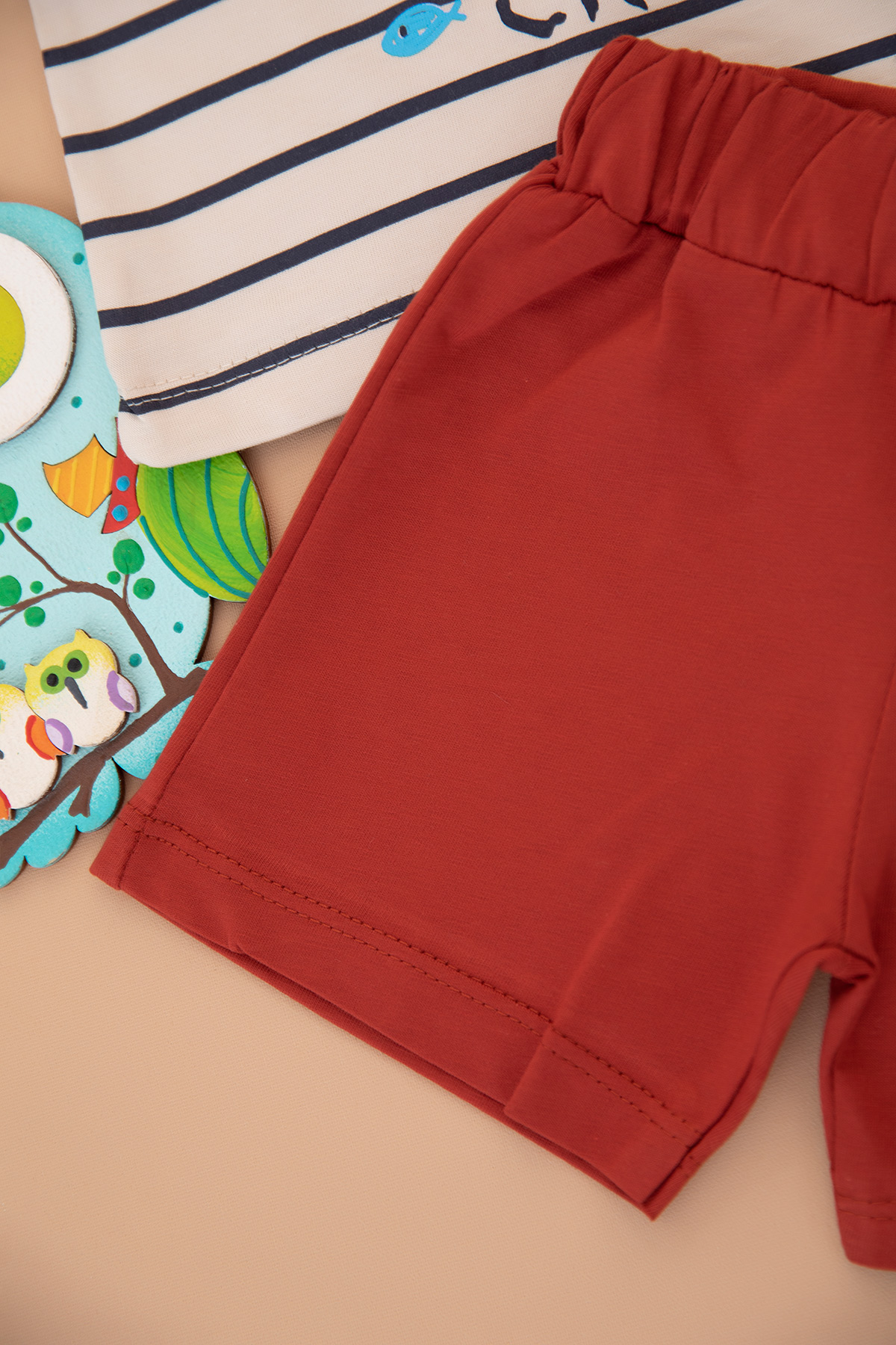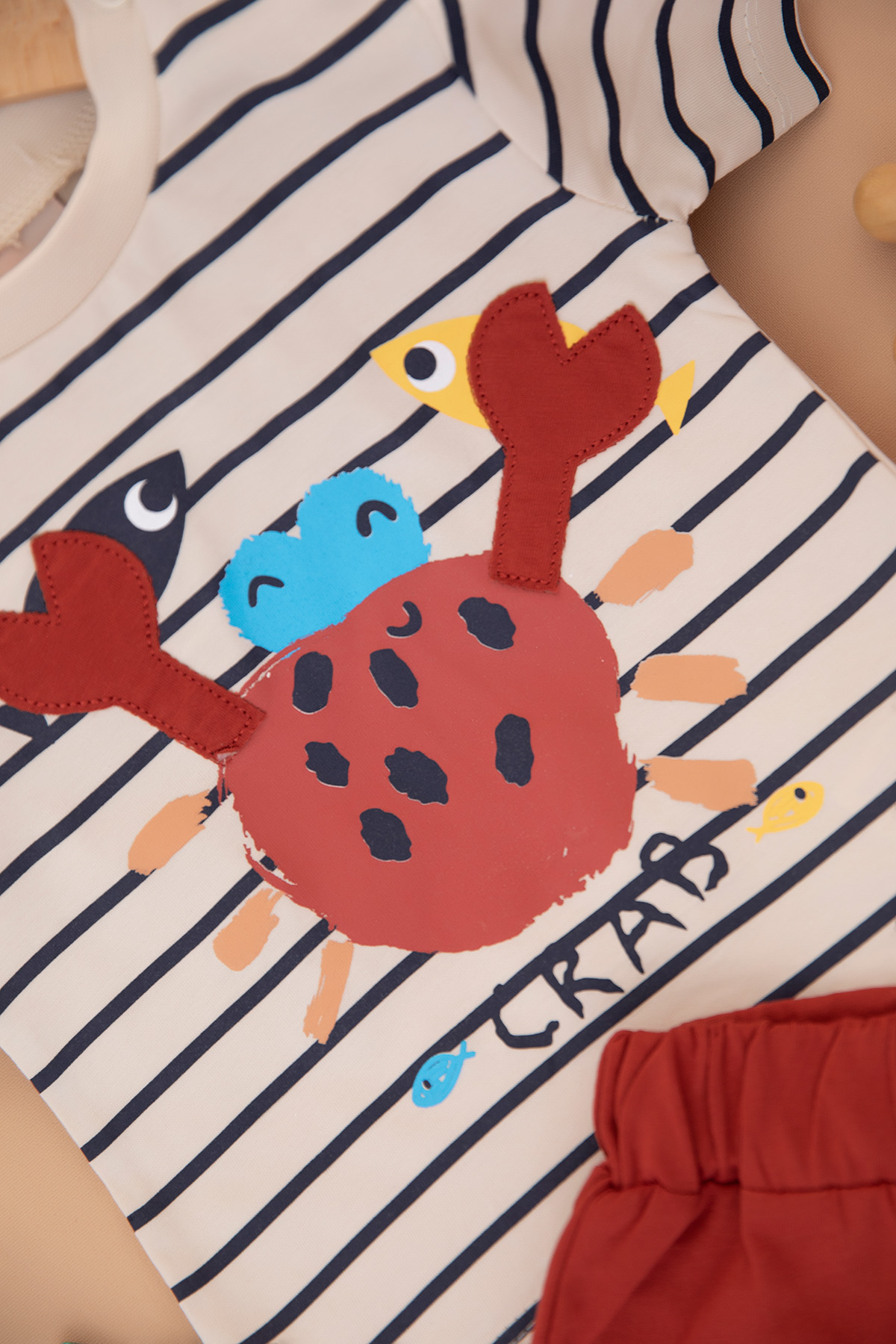 Erkek Bebek Yengeç Baskılı Şortlu Takım - 25302 (9-24 Ay)