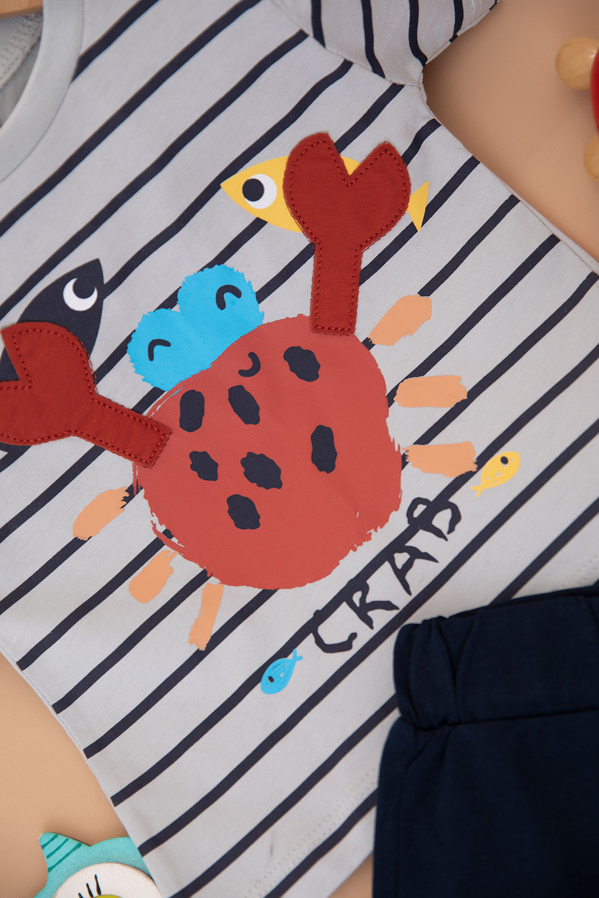 Erkek Bebek Yengeç Baskılı Şortlu Takım - 25302 (9-24 Ay)