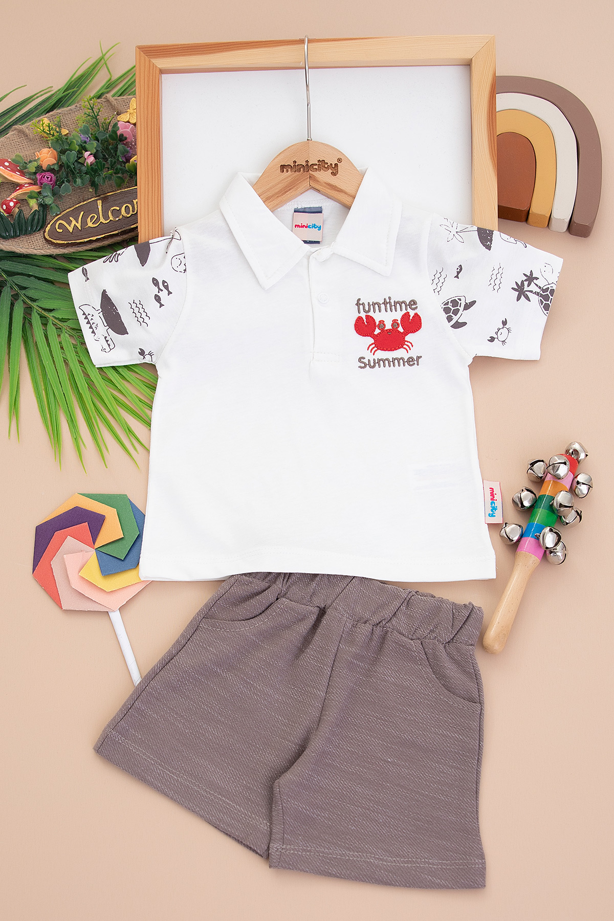 Erkek Bebek Yengeç Nakışlı Şortlu Takım - 24145 (9-24 Ay)
