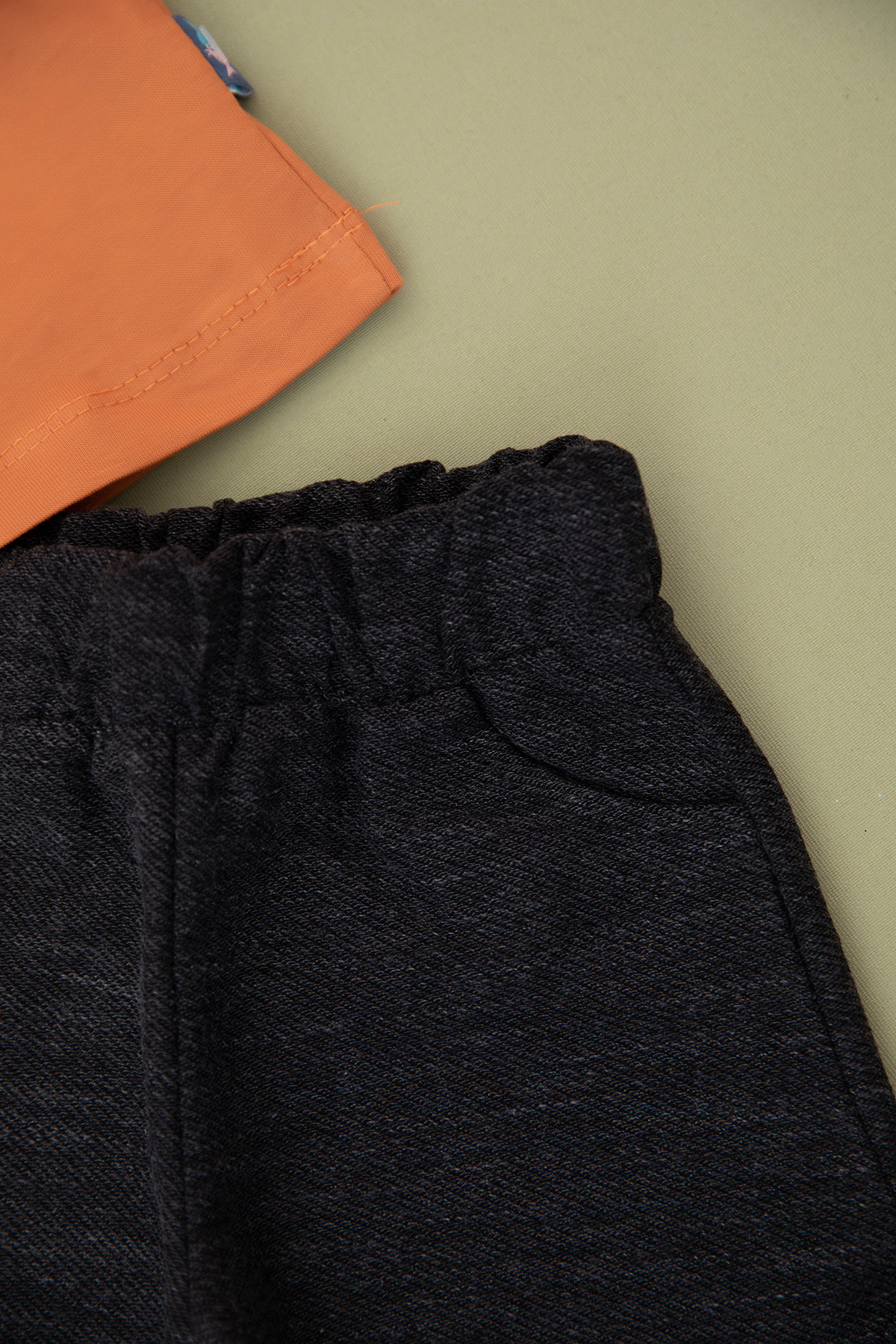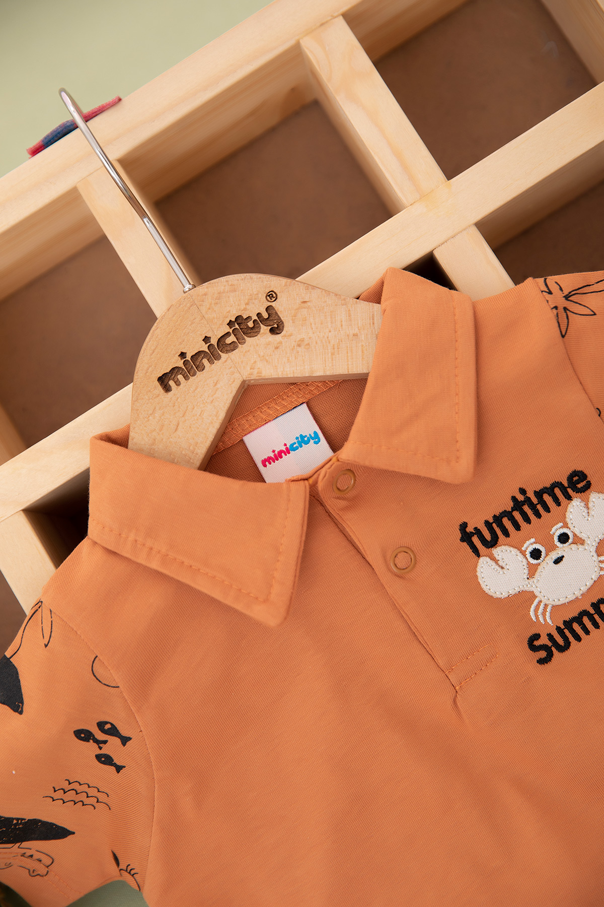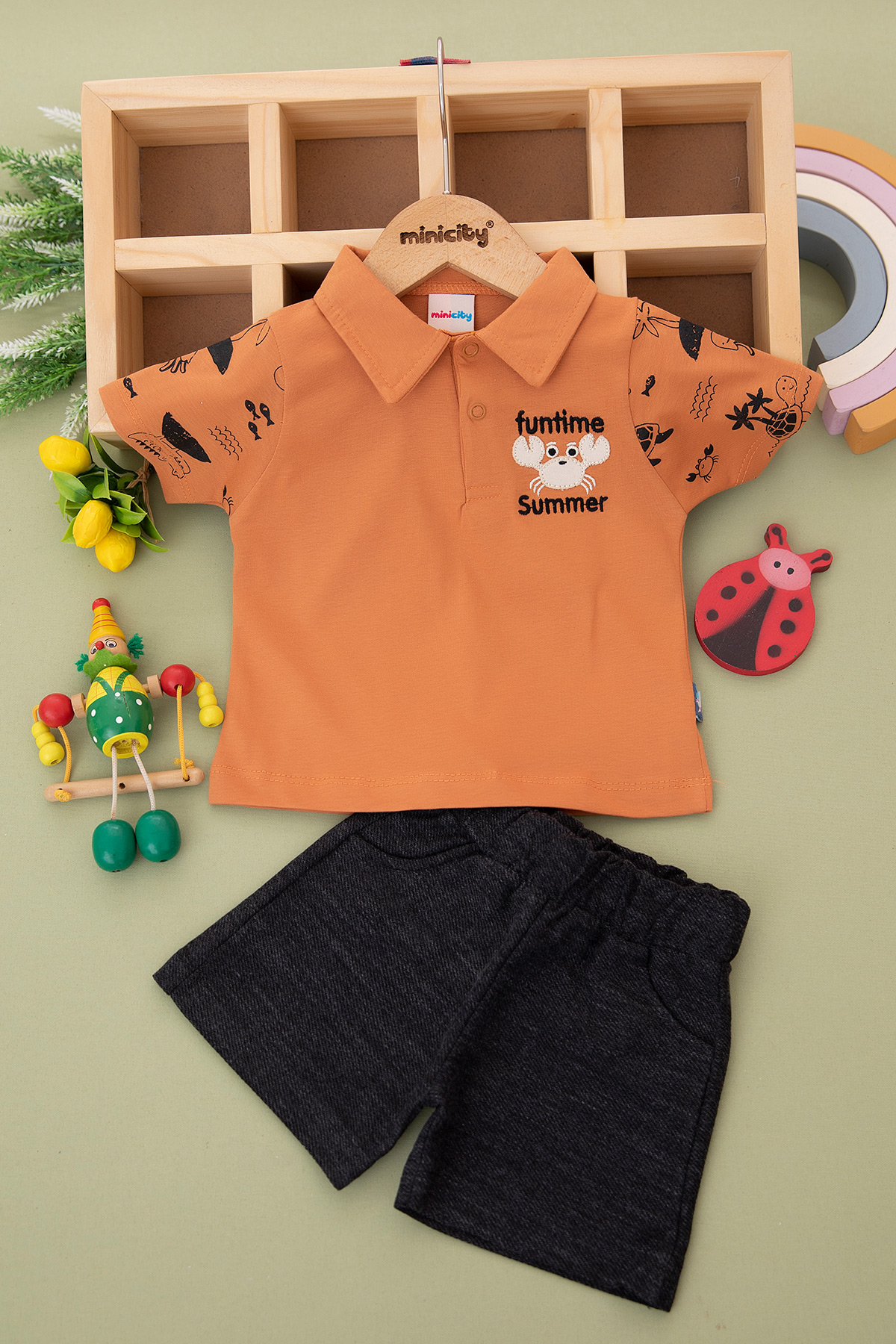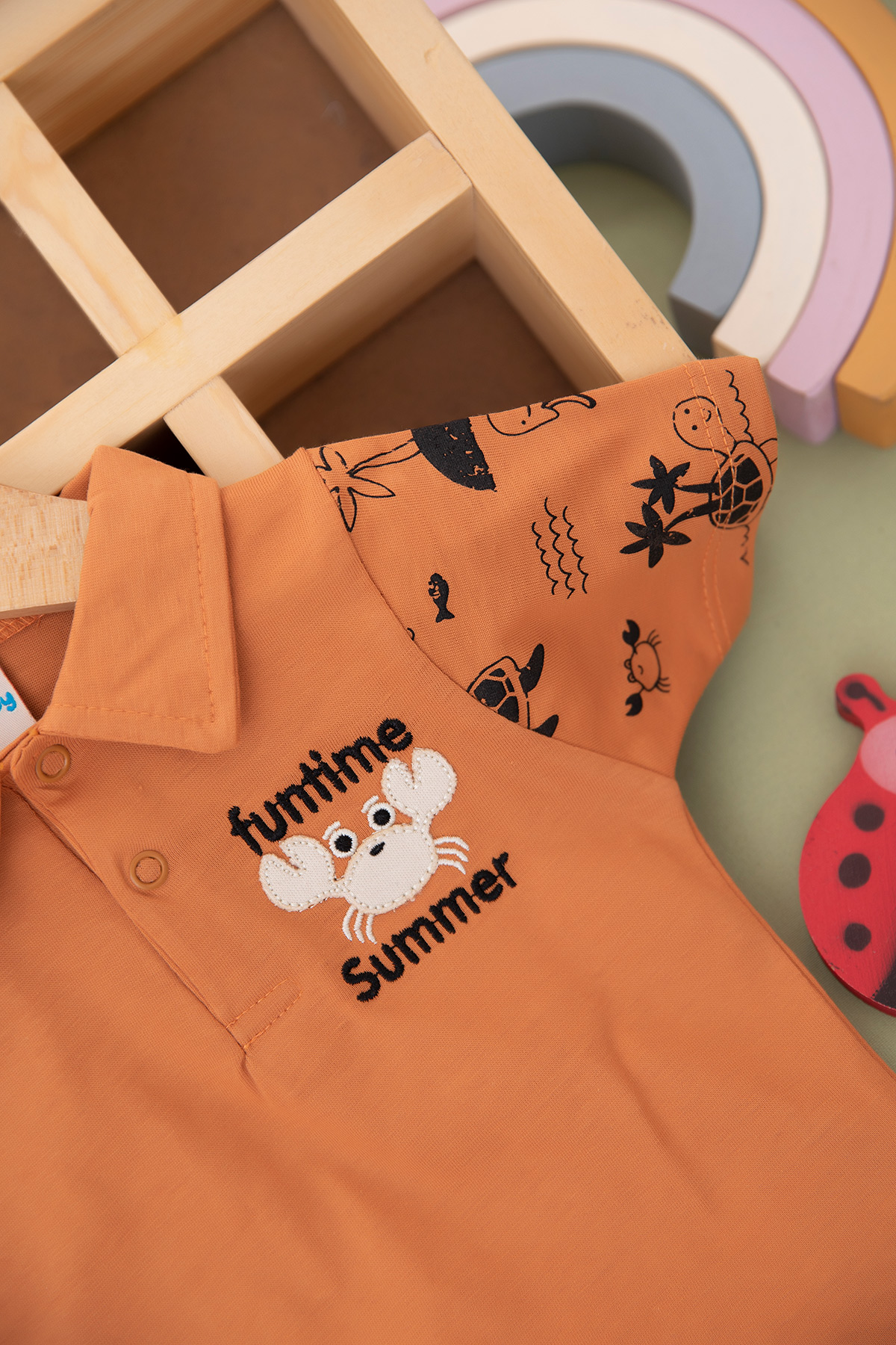 Erkek Bebek Yengeç Nakışlı Şortlu Takım - 24145 (9-24 Ay)