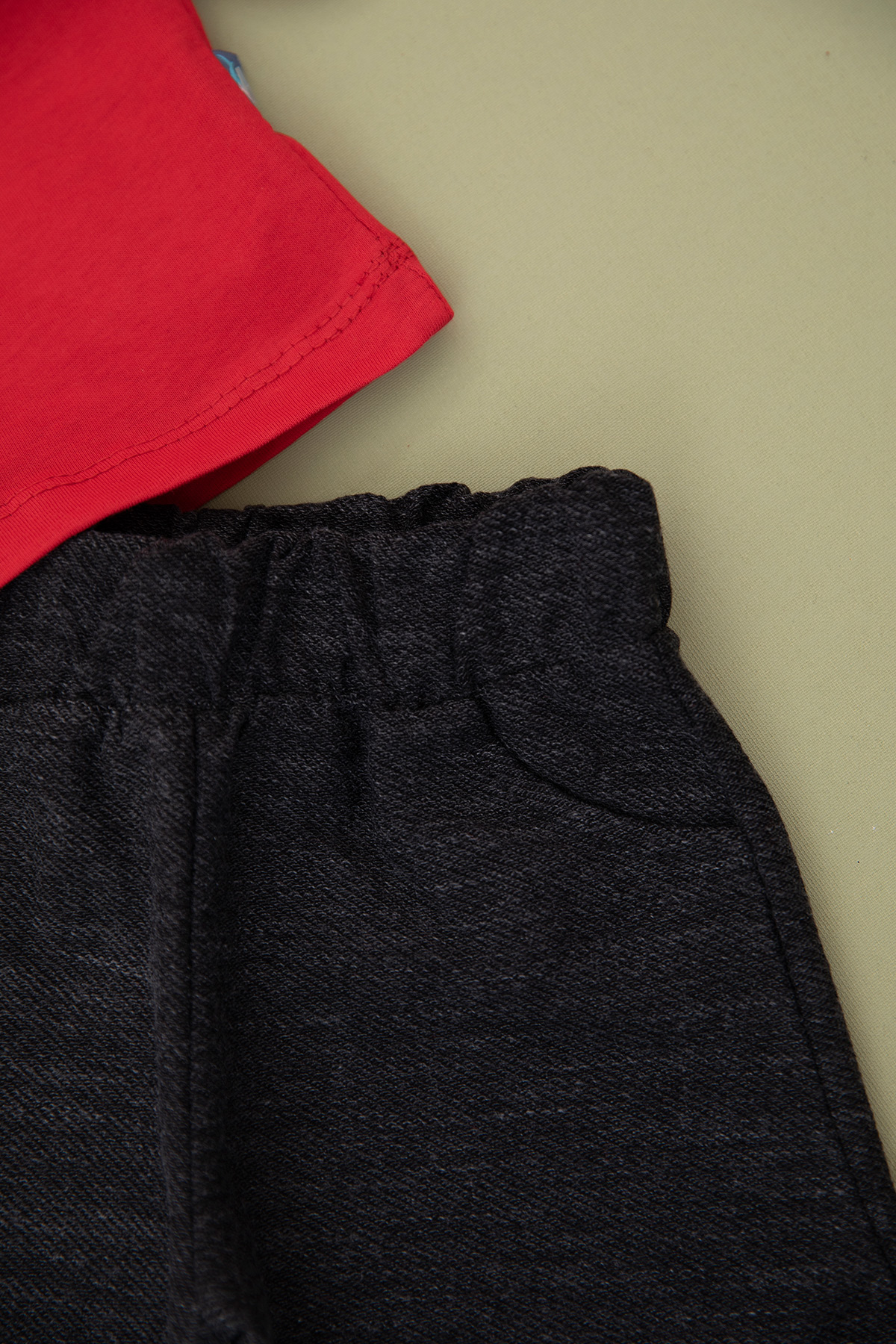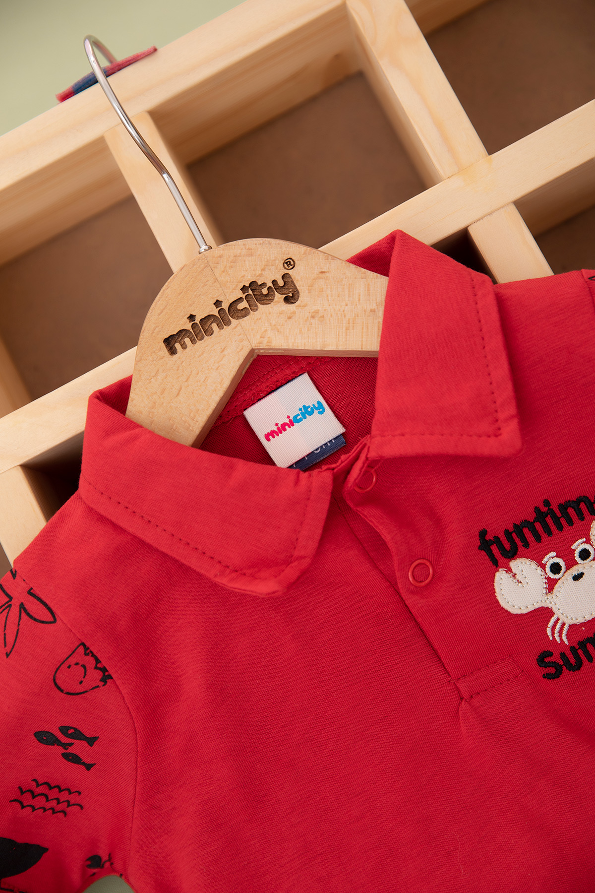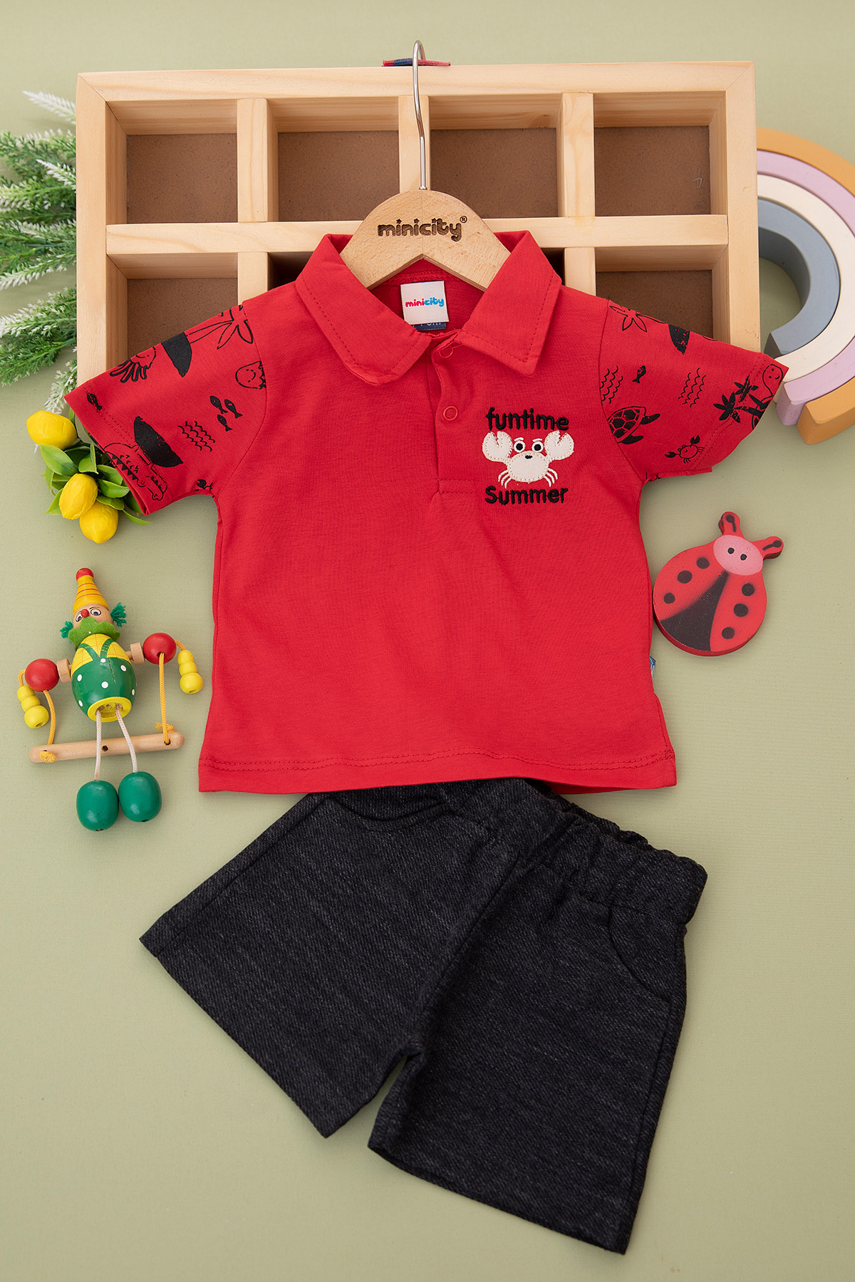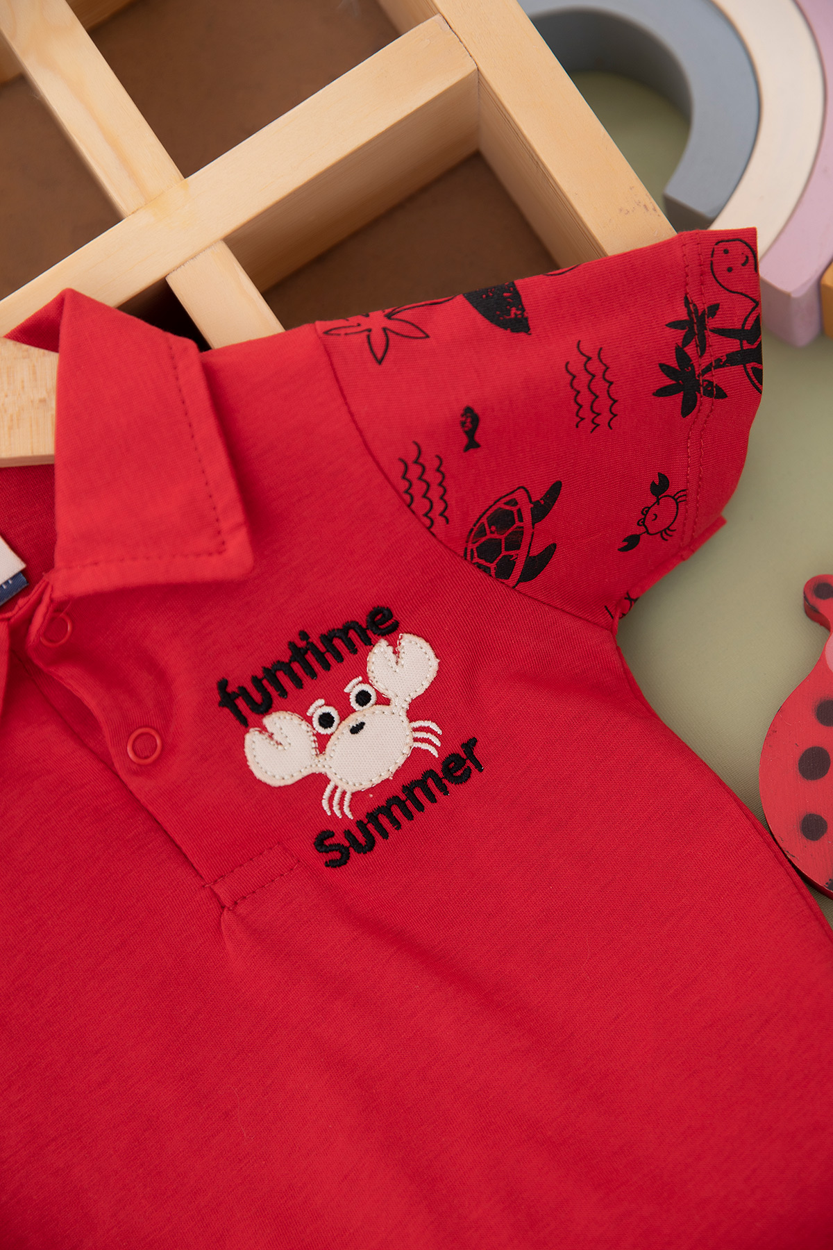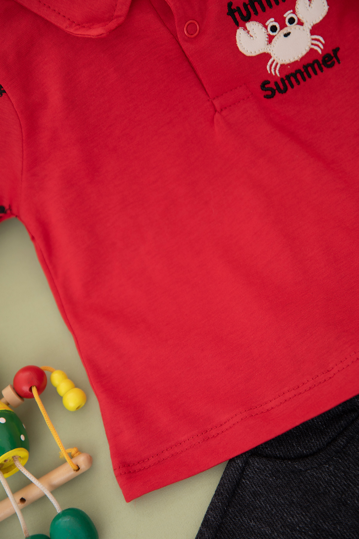Erkek Bebek Yengeç Nakışlı Şortlu Takım - 24145 (9-24 Ay)