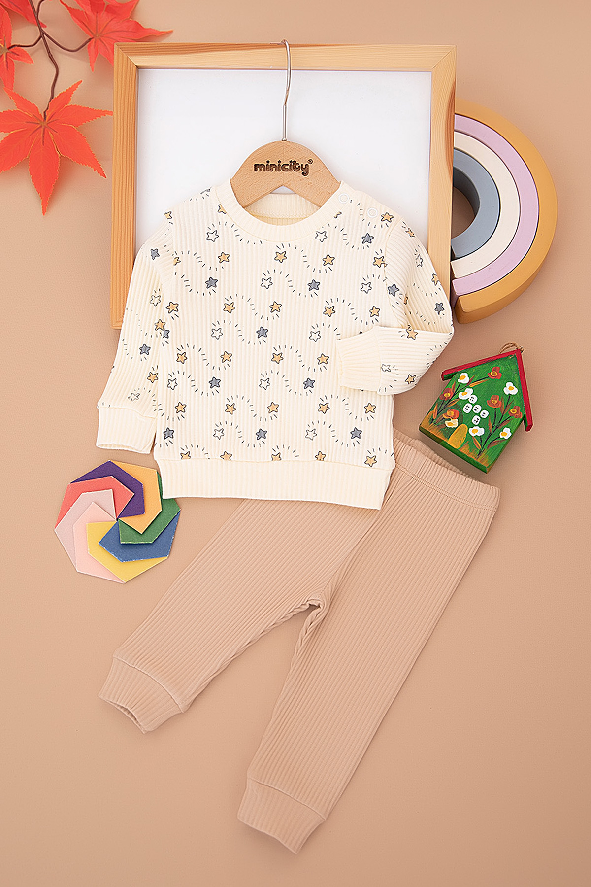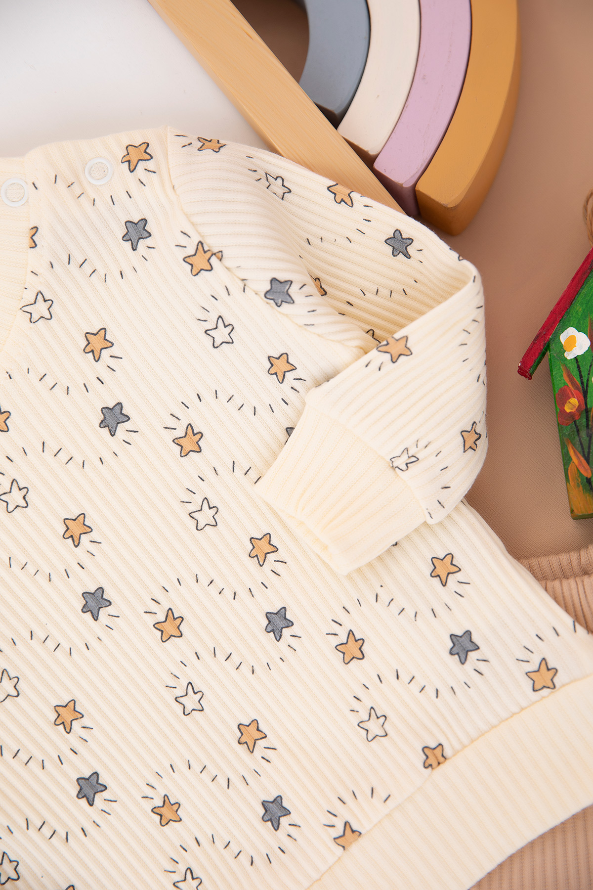 Erkek Bebek Yıldız Baskılı Fitilli Takım - 1266 (3-12 Ay)