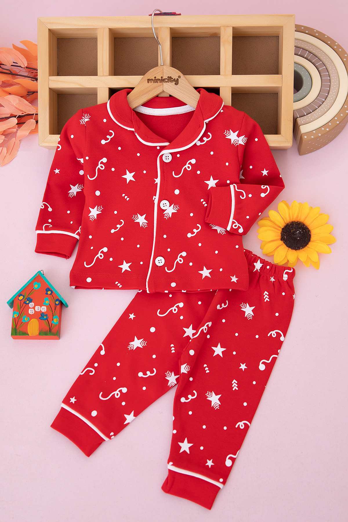 Erkek Bebek Yıldız Baskılı Pijama Takımı - 1103 (6-24 Ay)