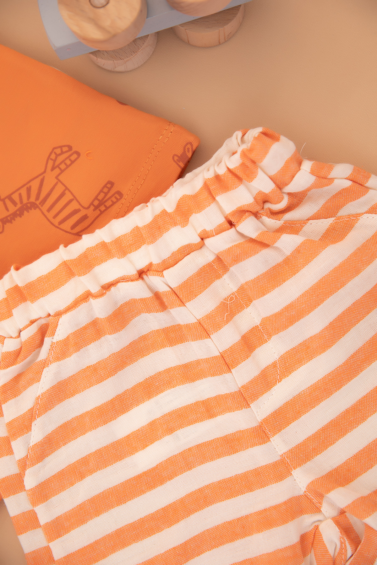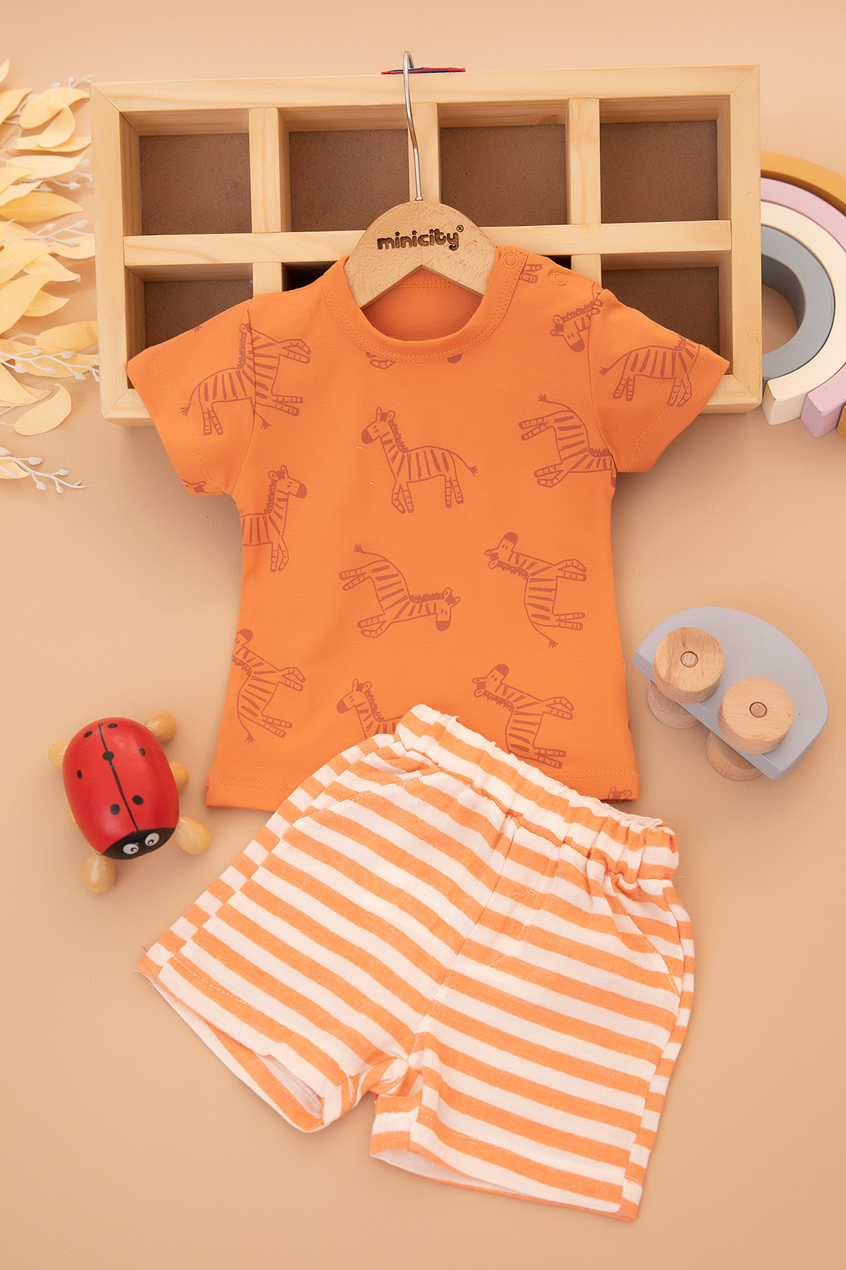 Erkek Bebek Zebra Baskılı Çizgili Şortlu Takım - 2586 (6-24 Ay)