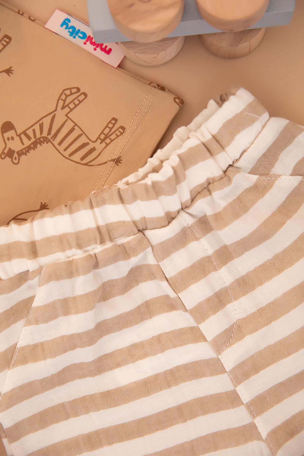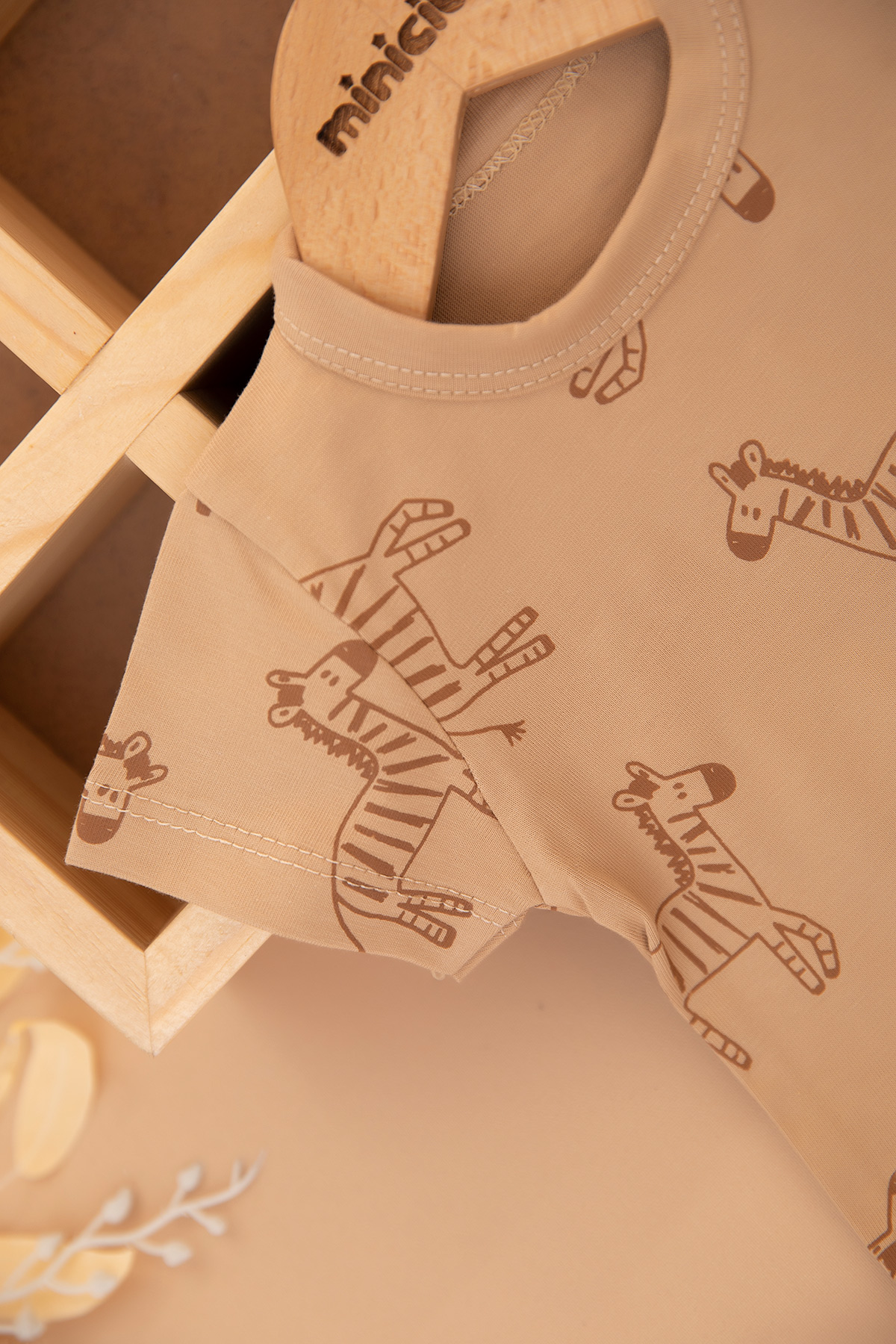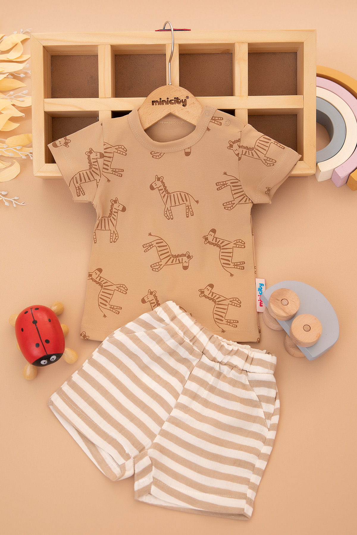 Erkek Bebek Zebra Baskılı Çizgili Şortlu Takım - 2586 (6-24 Ay)