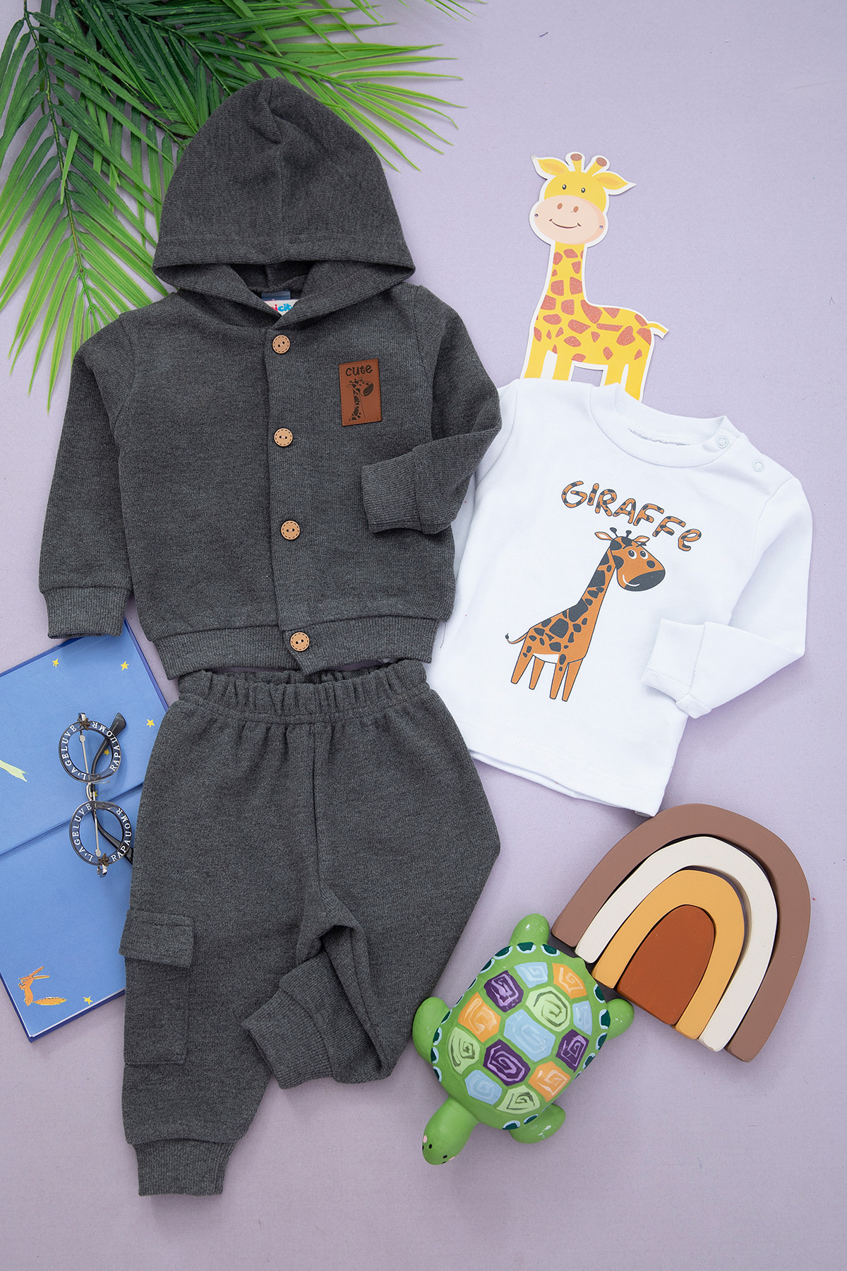 Erkek Bebek Zürafa Aplikeli Selanik Takım - 22737 (9-24 Ay)