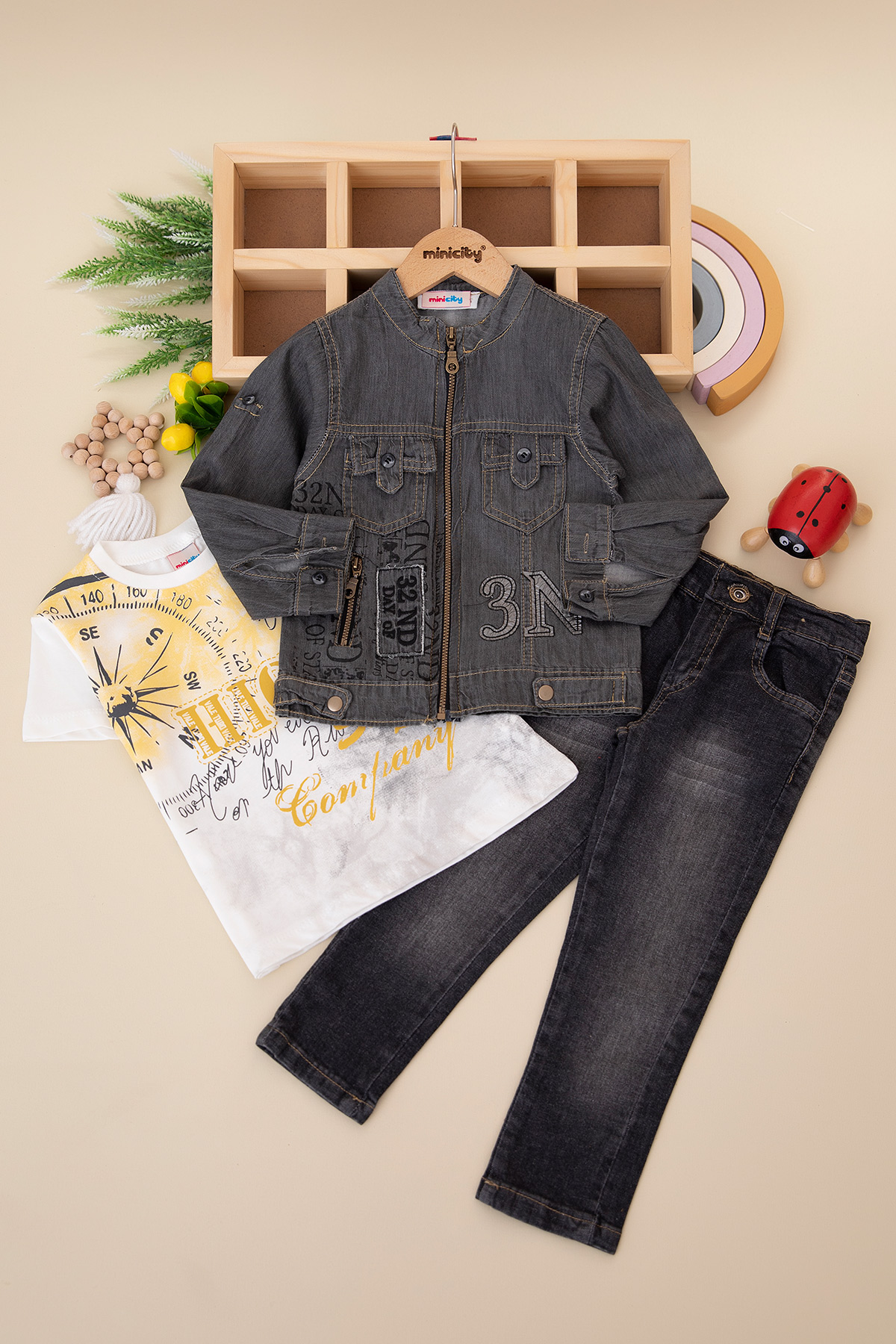 Erkek Çocuk 3N Nakışlı Montlu Takım - 2306 (2-5 Yaş)