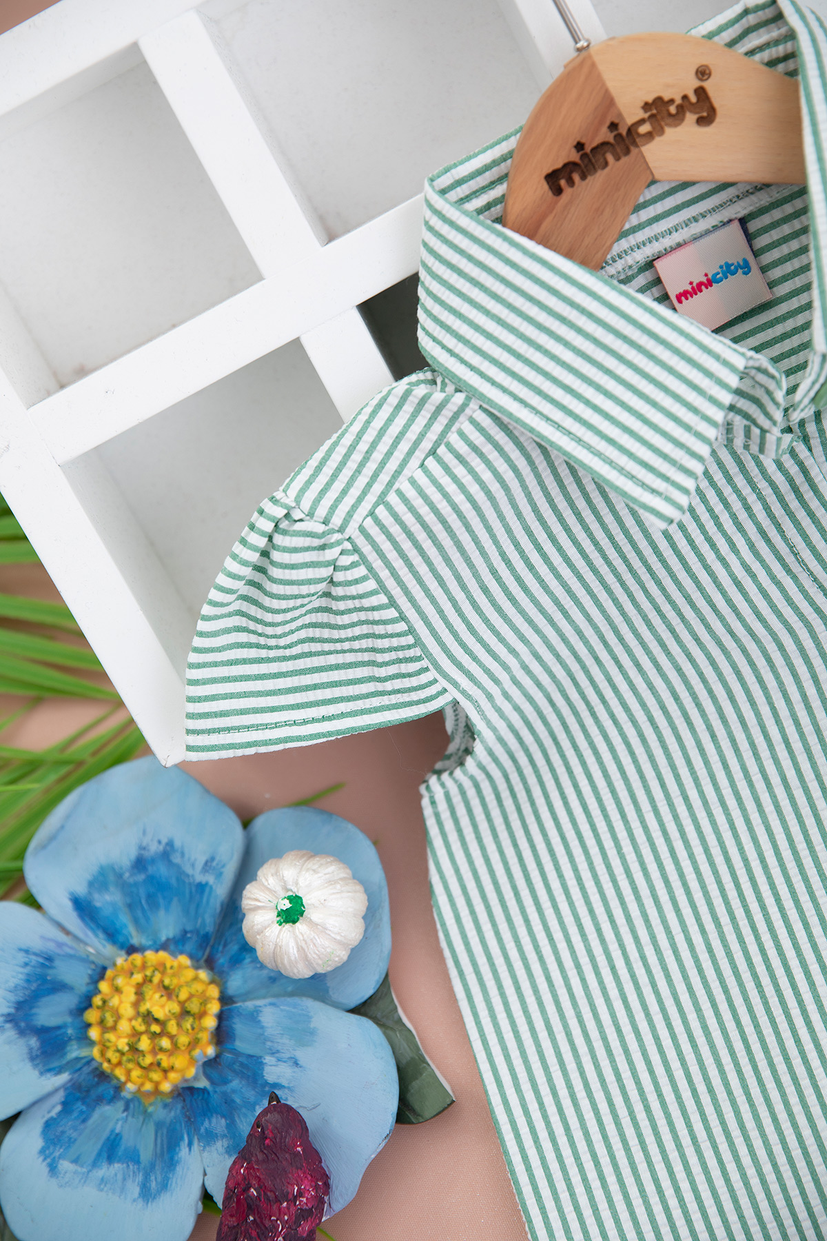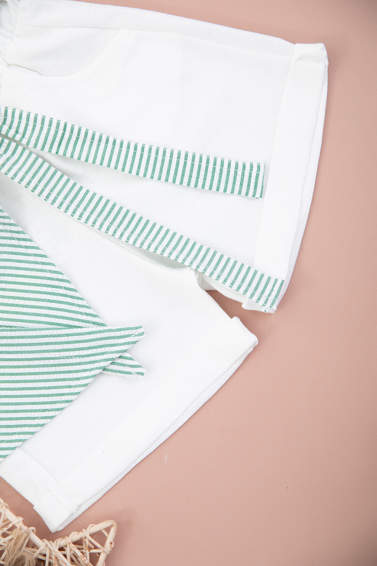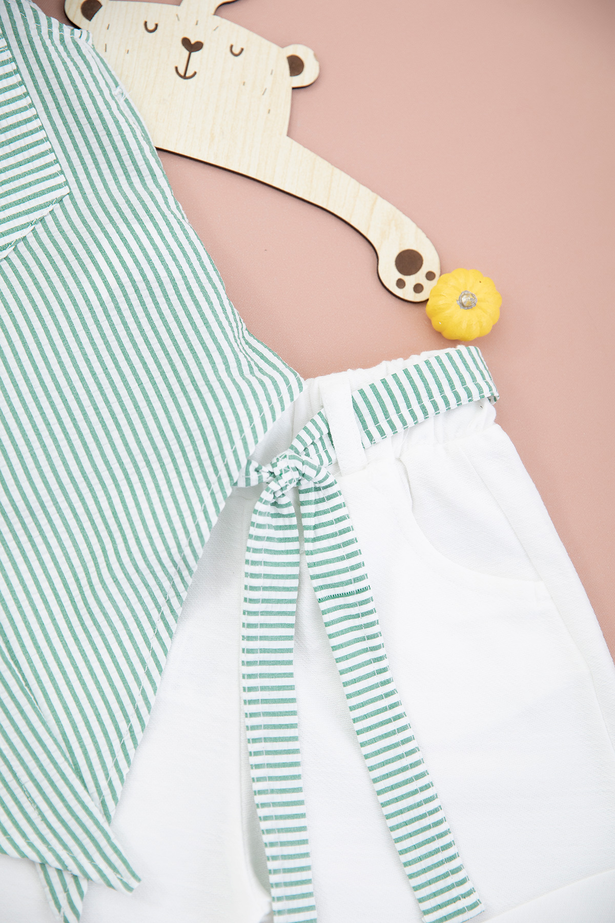 Kız Çocuk Çizgili Nakışlı Şortlu Takım - (3-6 Yaş)