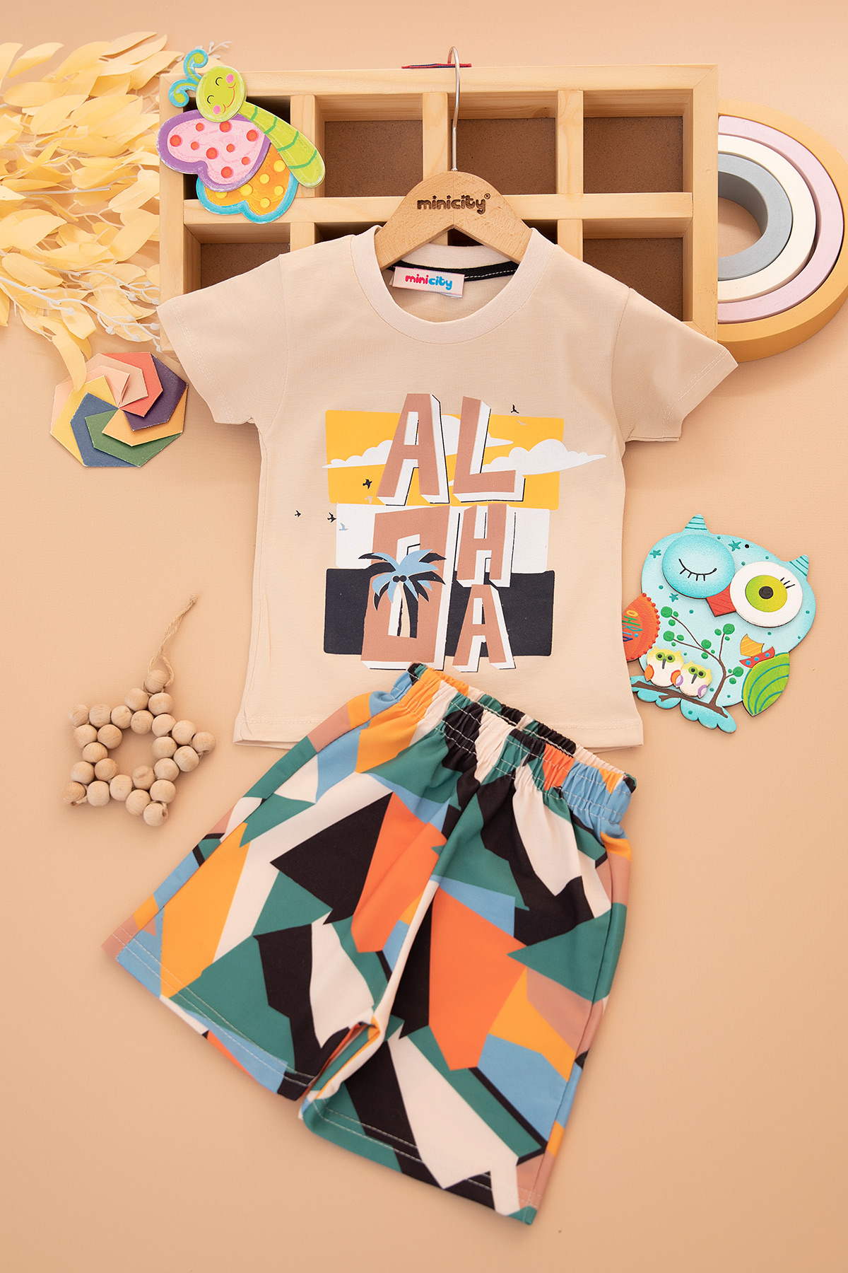 Erkek Çocuk Aloha Baskılı Şortlu Takım - 30215 (2-9 Yaş)