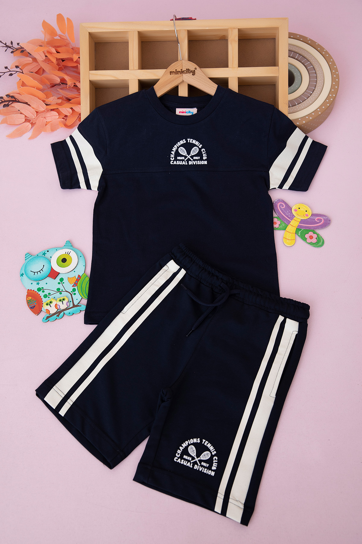 Erkek Çocuk Alt Yanlar Baskılı Kaprili Takım - 7205 (7-10 Yaş)