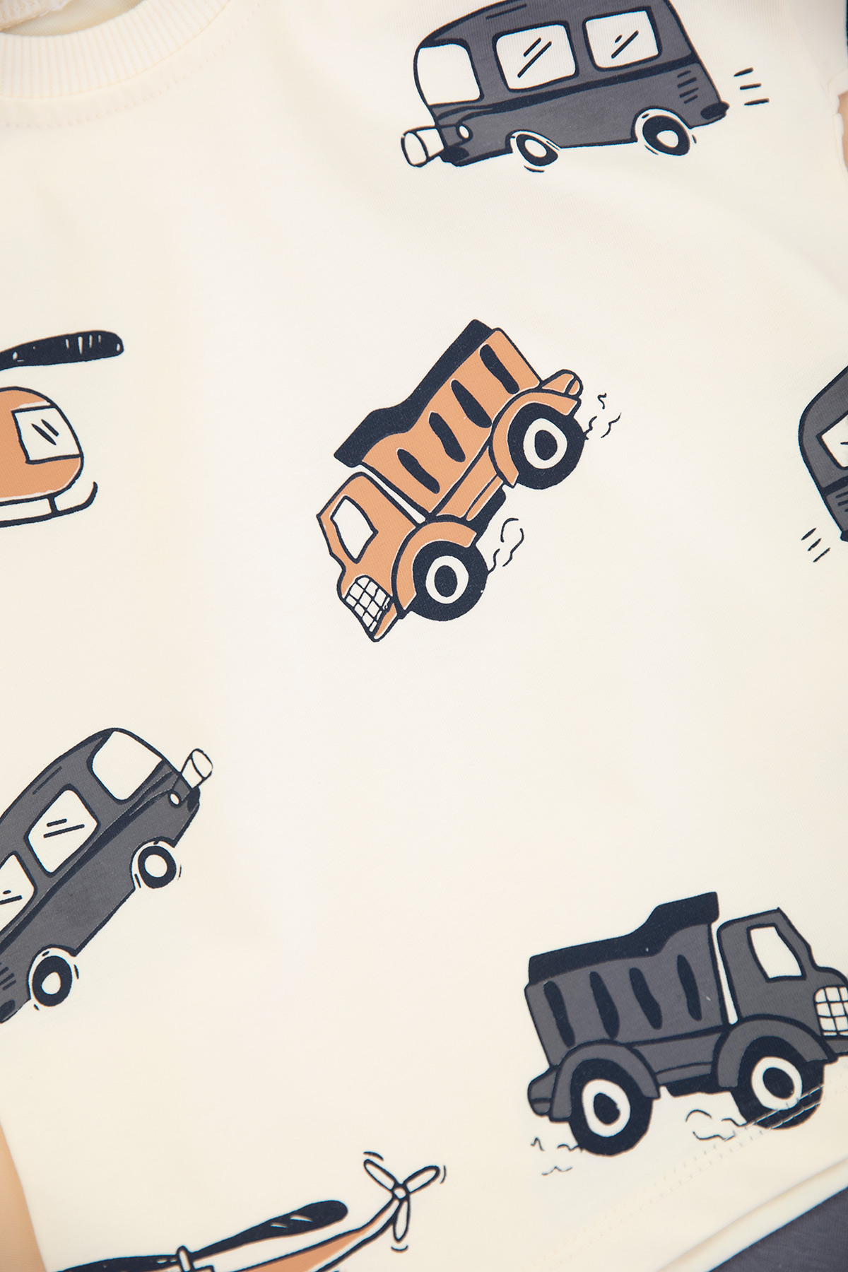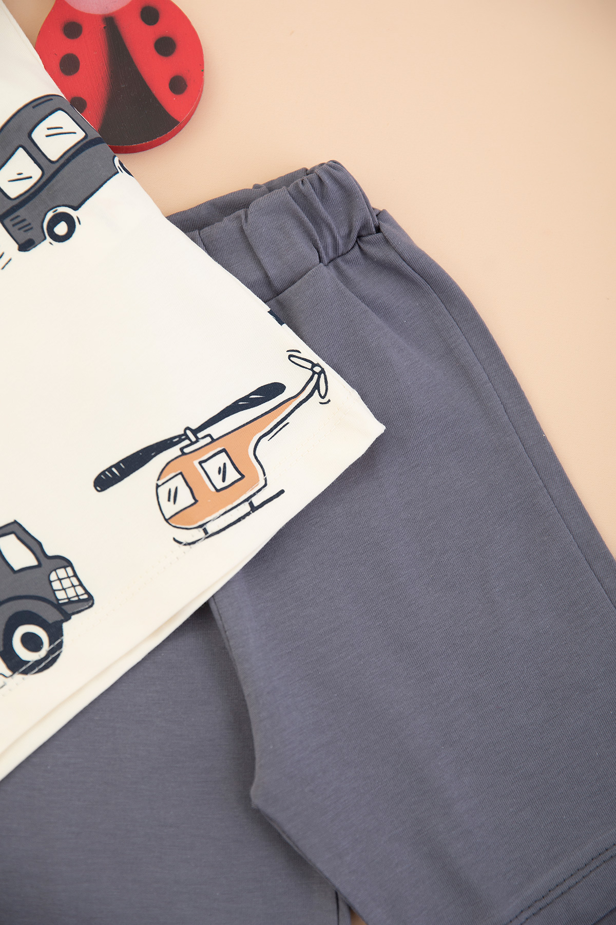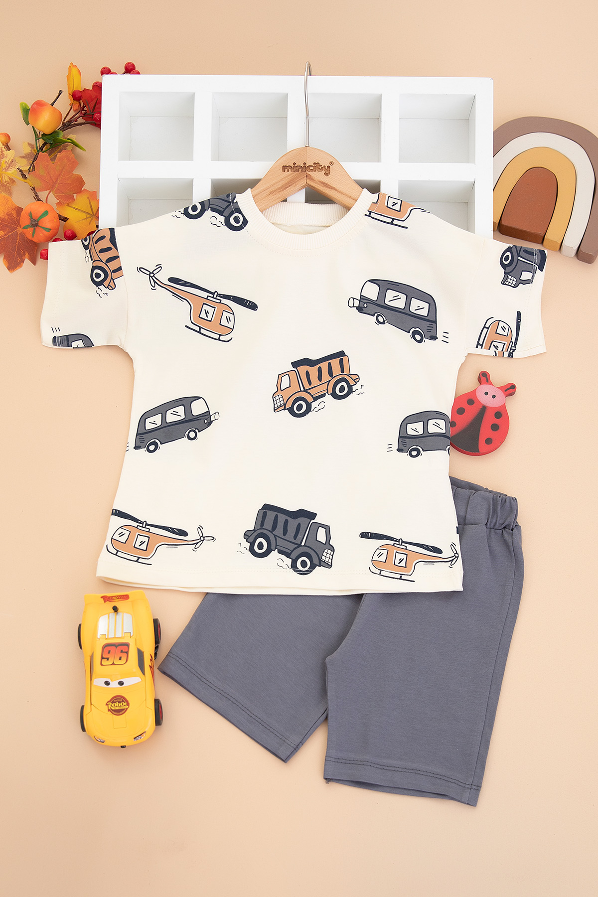 Erkek Çocuk Arabalar Baskılı Şortlu Takım - 873 (2-5 Yaş)
