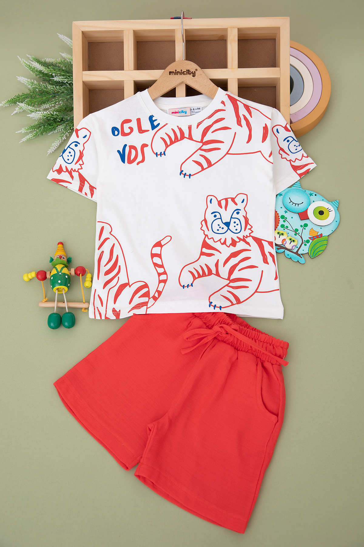 Erkek Çocuk Aslan Baskılı Şortlu Takım - 1416 (3-10 Yaş)