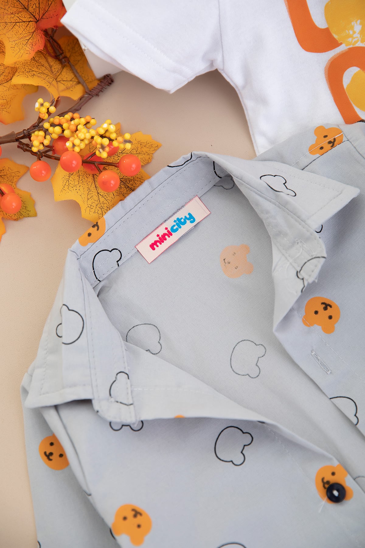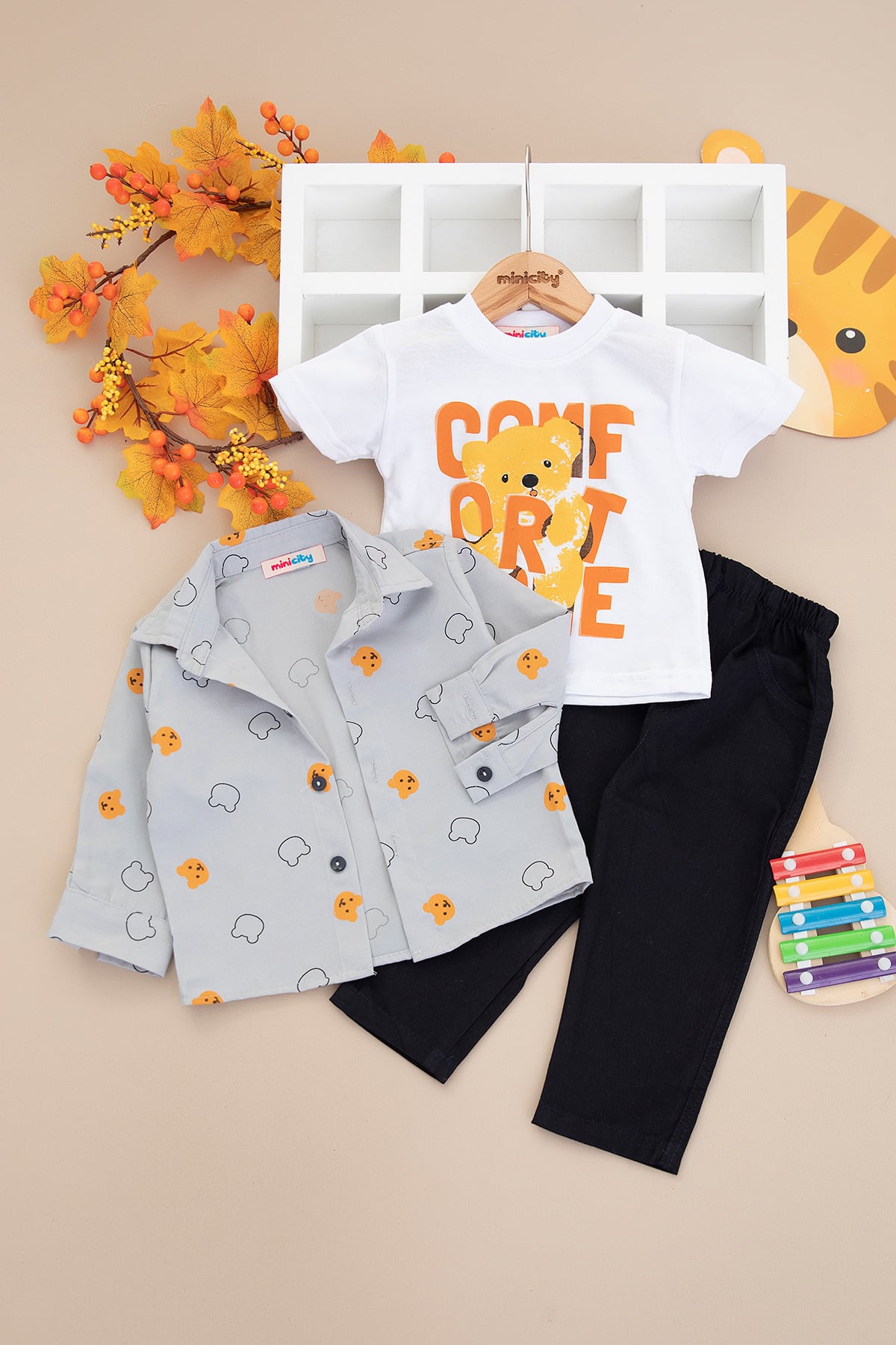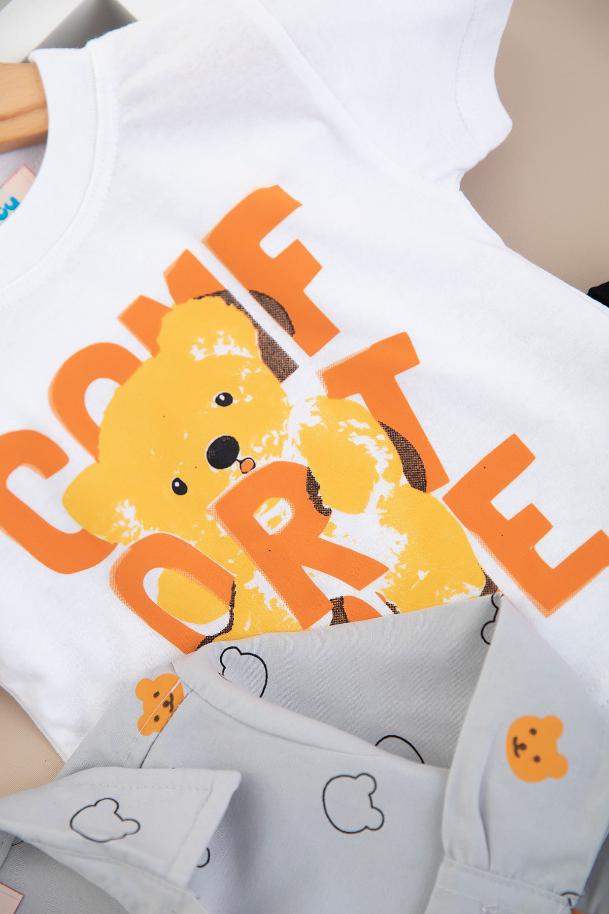 Erkek Çocuk Ayı Baskılı Gabardin Üçlü Takım - 25-081 (1-3 Yaş)