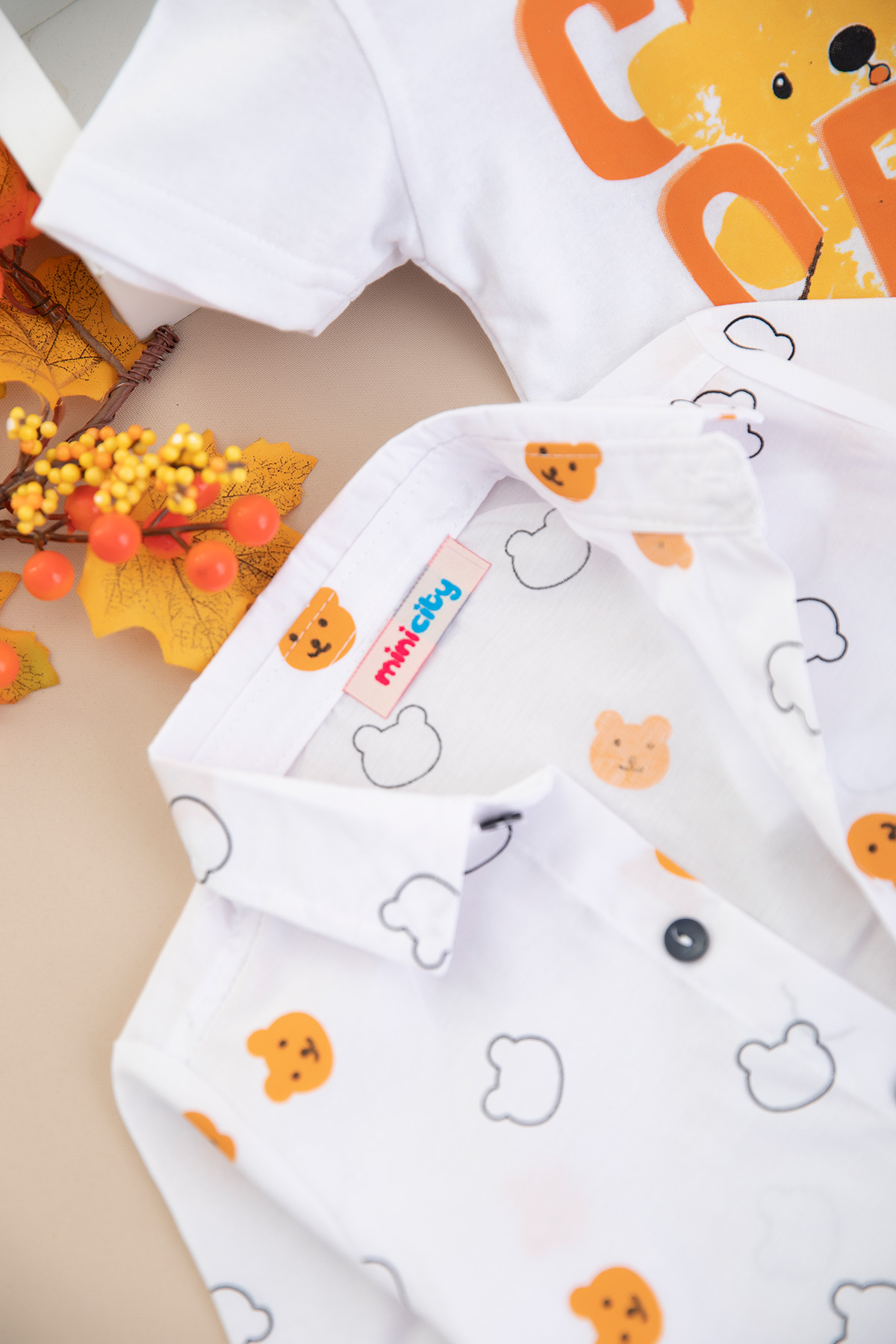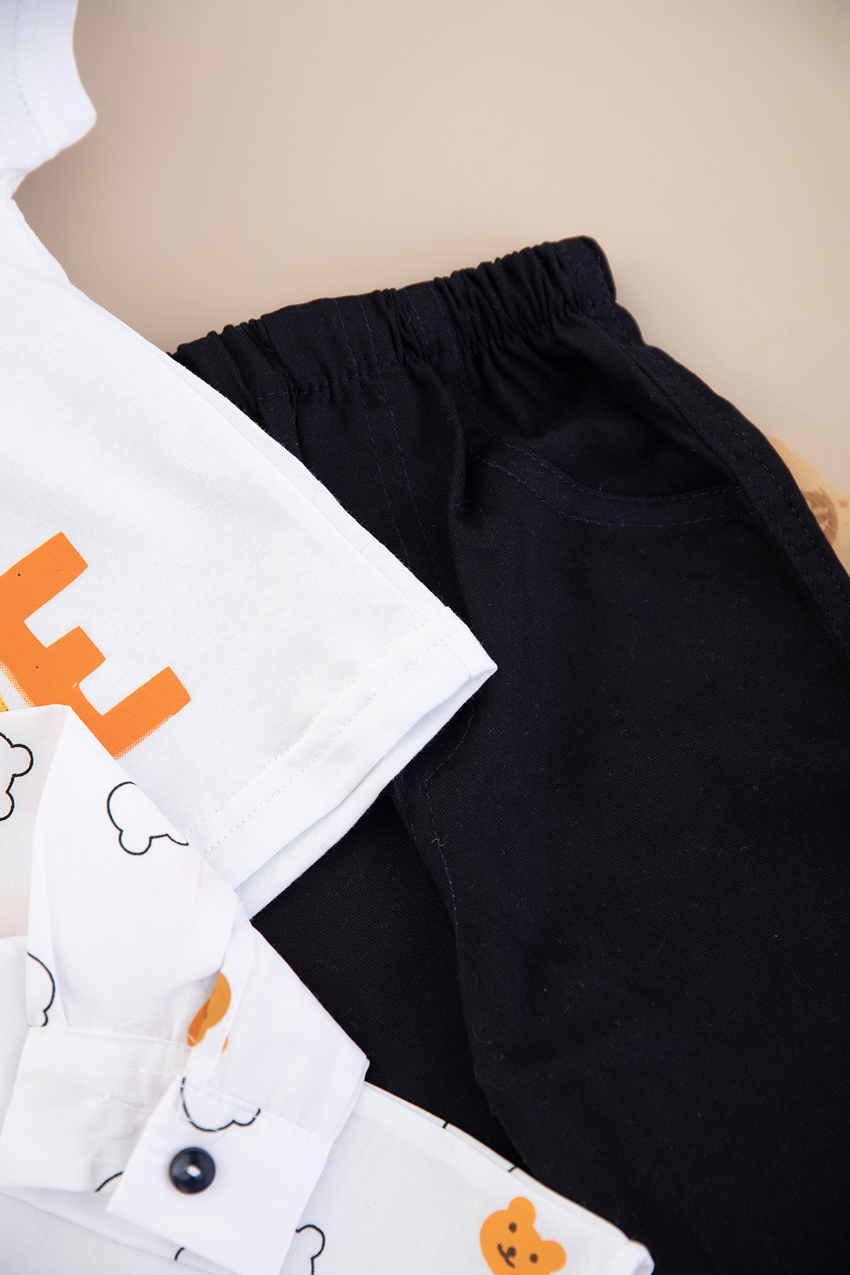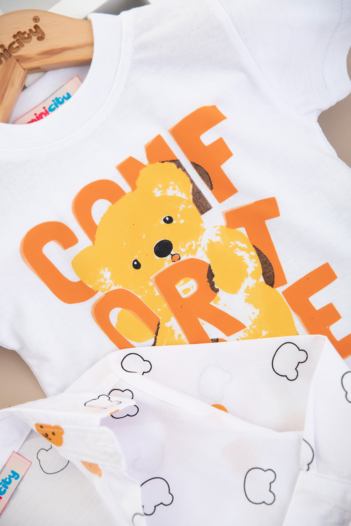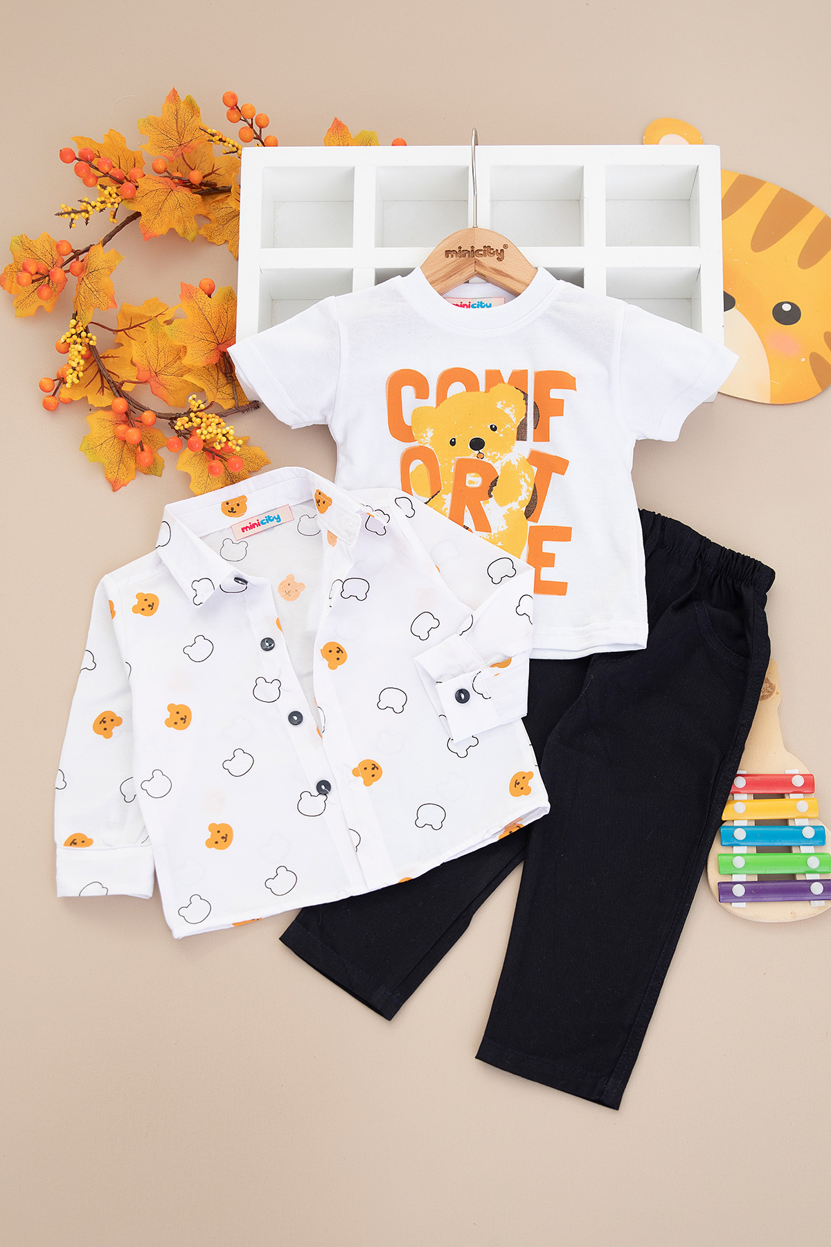 Erkek Çocuk Ayı Baskılı Gabardin Üçlü Takım - 25-081 (1-3 Yaş)