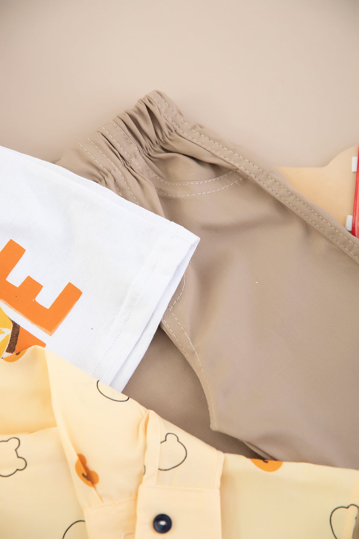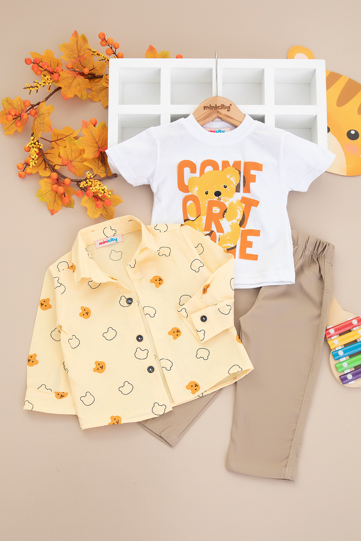 Erkek Çocuk Ayı Baskılı Gabardin Üçlü Takım - 25-082 (4-6 Yaş)