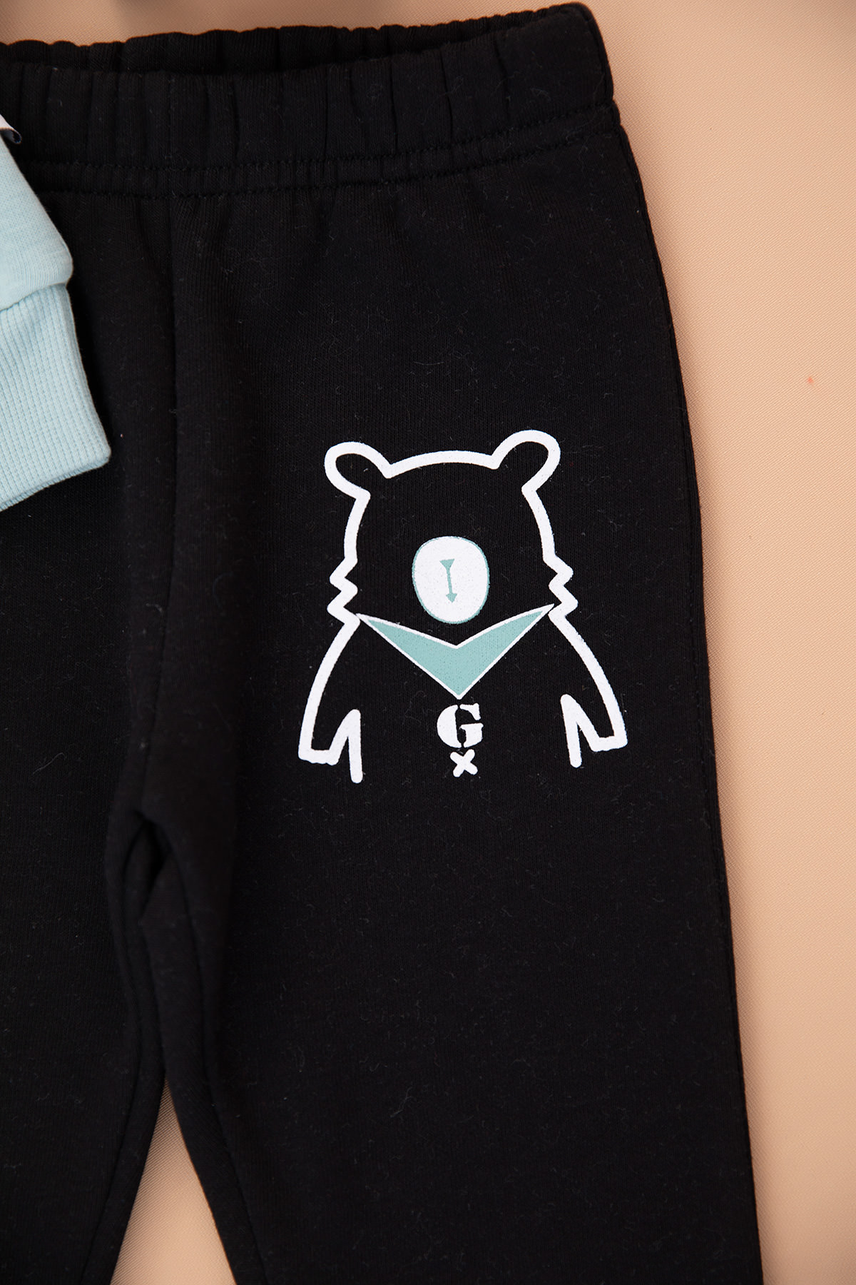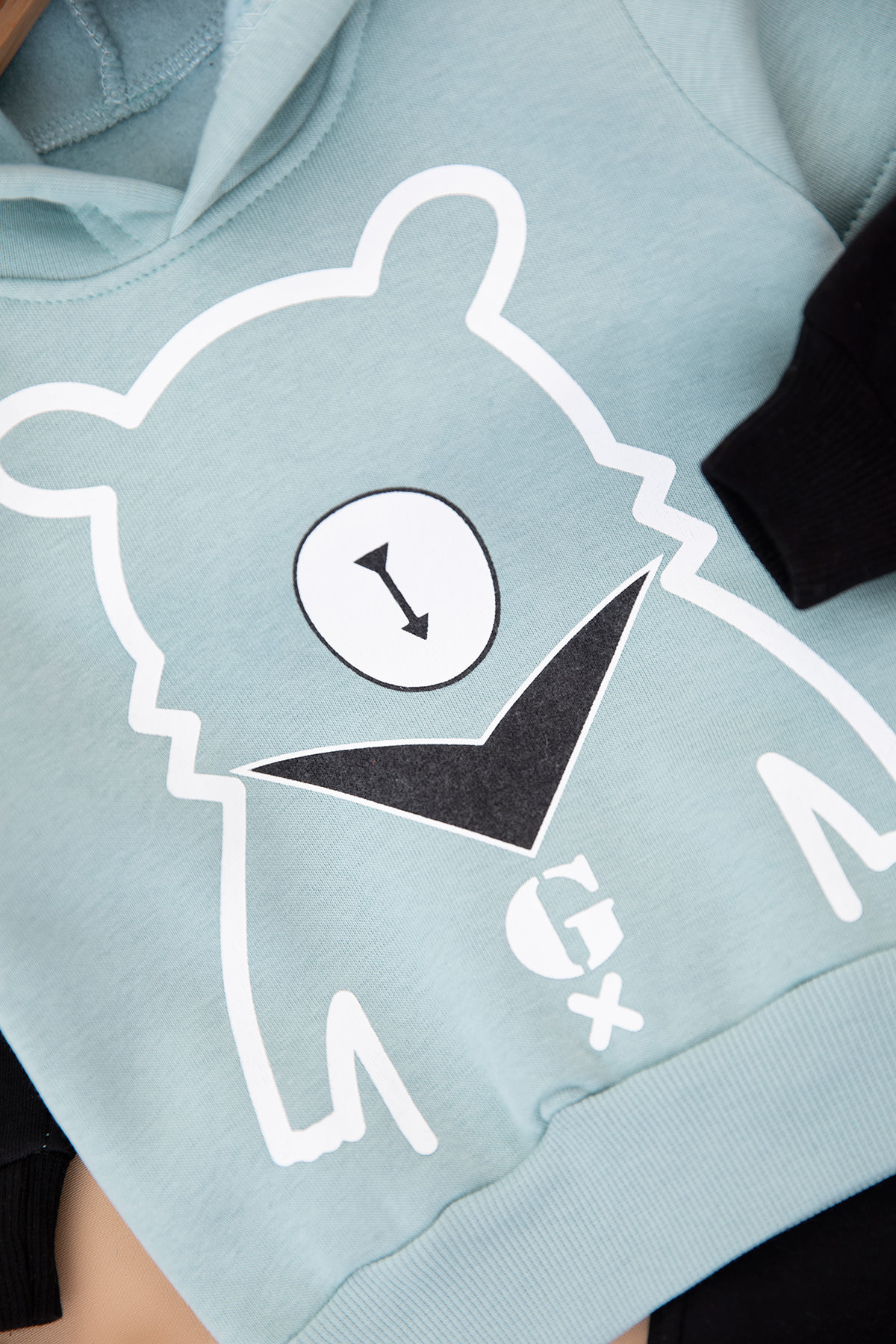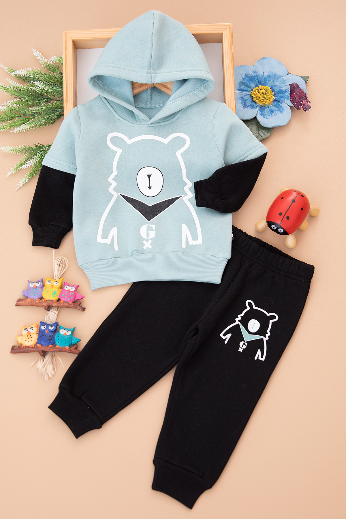 Erkek Çocuk Ayı Baskılı Kapüşonlu Üçip Takım - 23013 (1-3 Yaş)