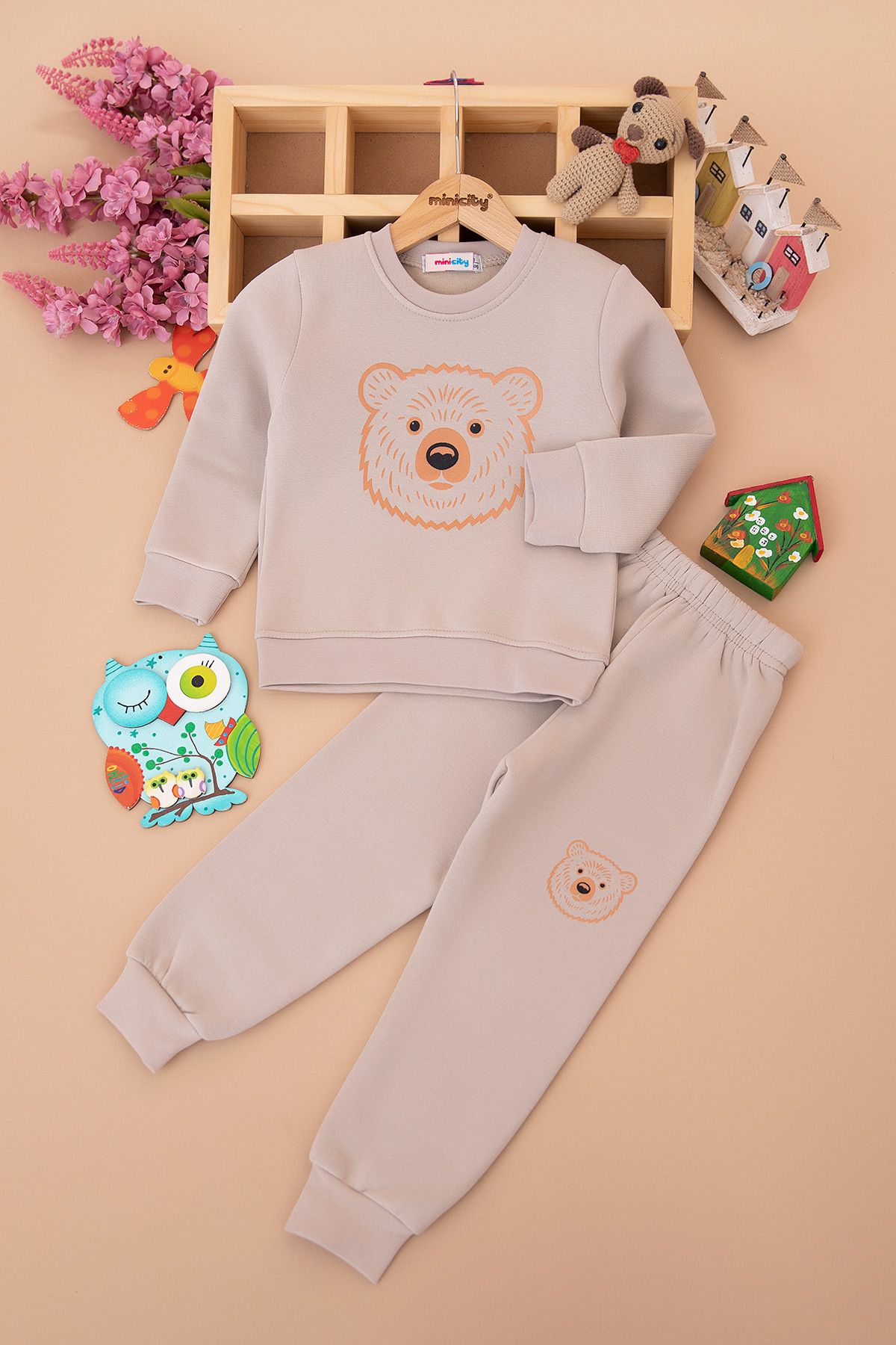 Erkek Çocuk Ayı Baskılı Üçip Takım - 50810 (3-7 Yaş)