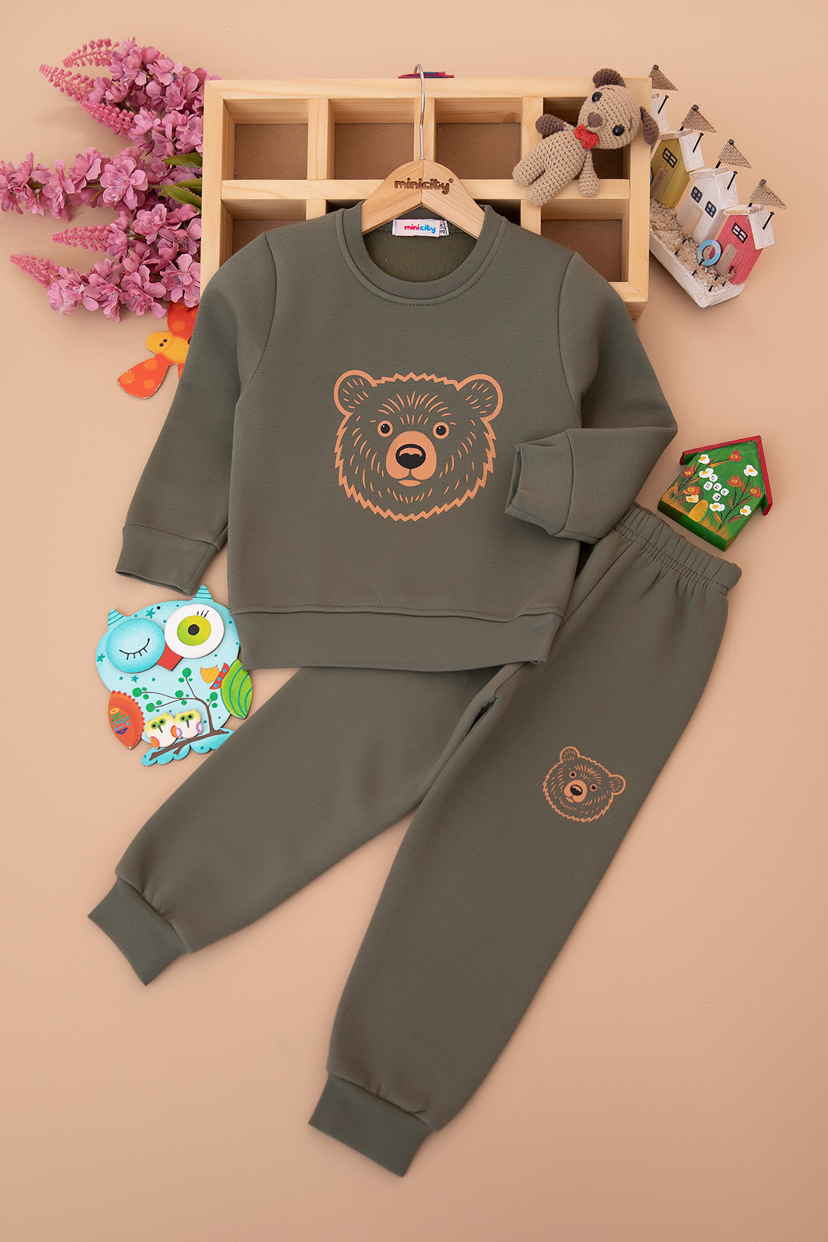 Erkek Çocuk Ayı Baskılı Üçip Takım - 50810 (3-7 Yaş)