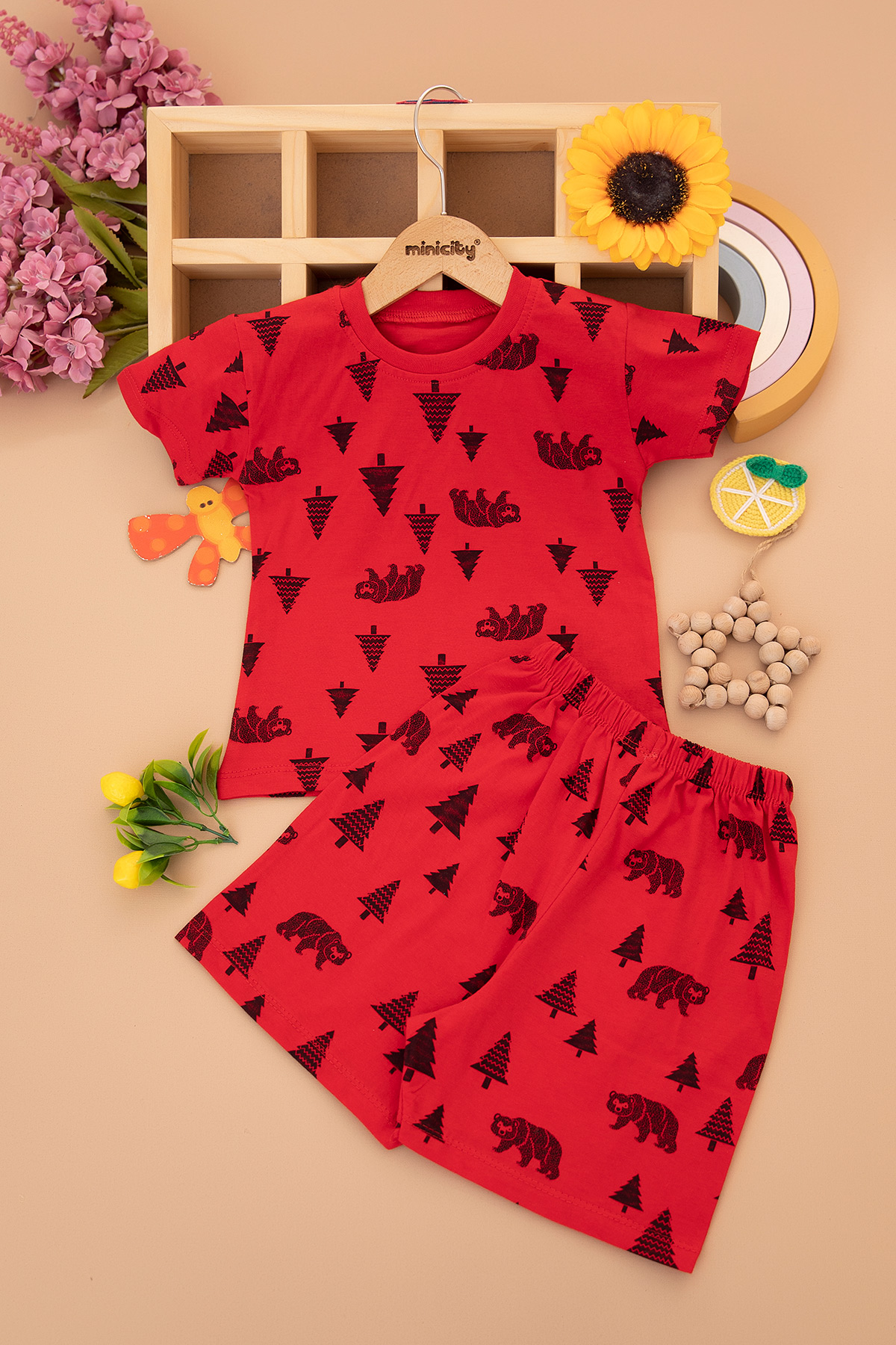 Erkek Çocuk Ayı Çam Baskılı Şortlu Takım (2-5 Yaş)