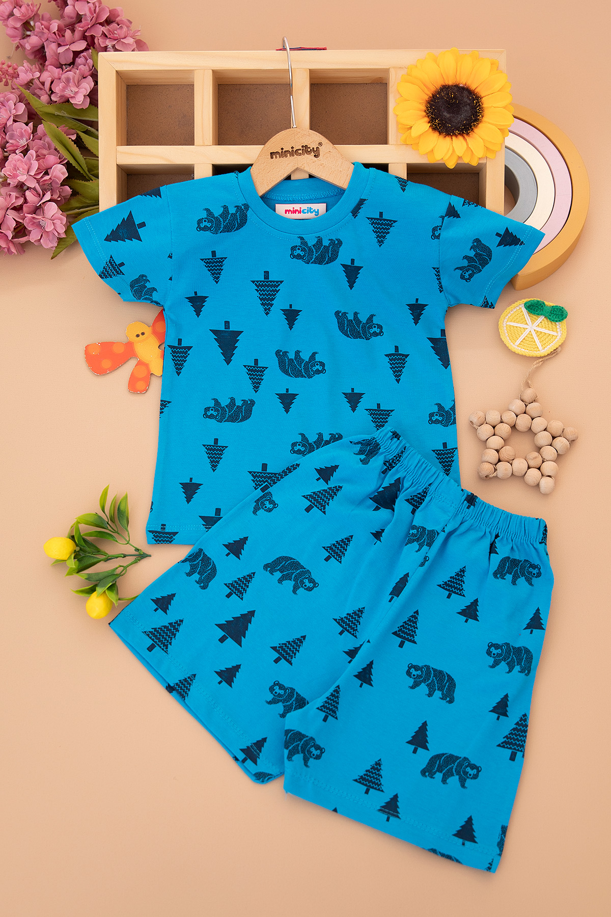 Erkek Çocuk Ayı Çam Baskılı Şortlu Takım (2-5 Yaş)