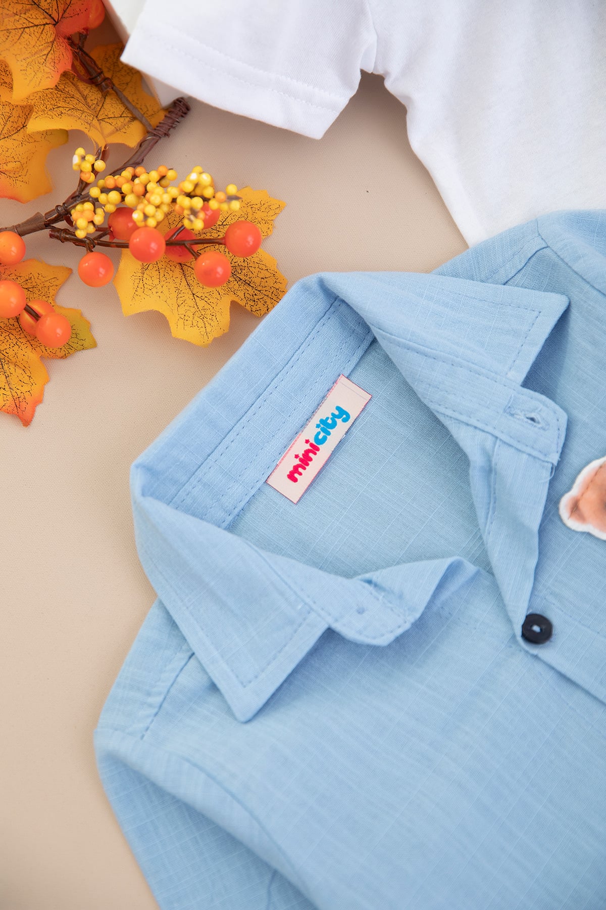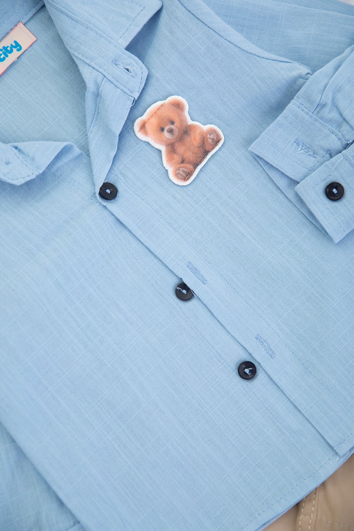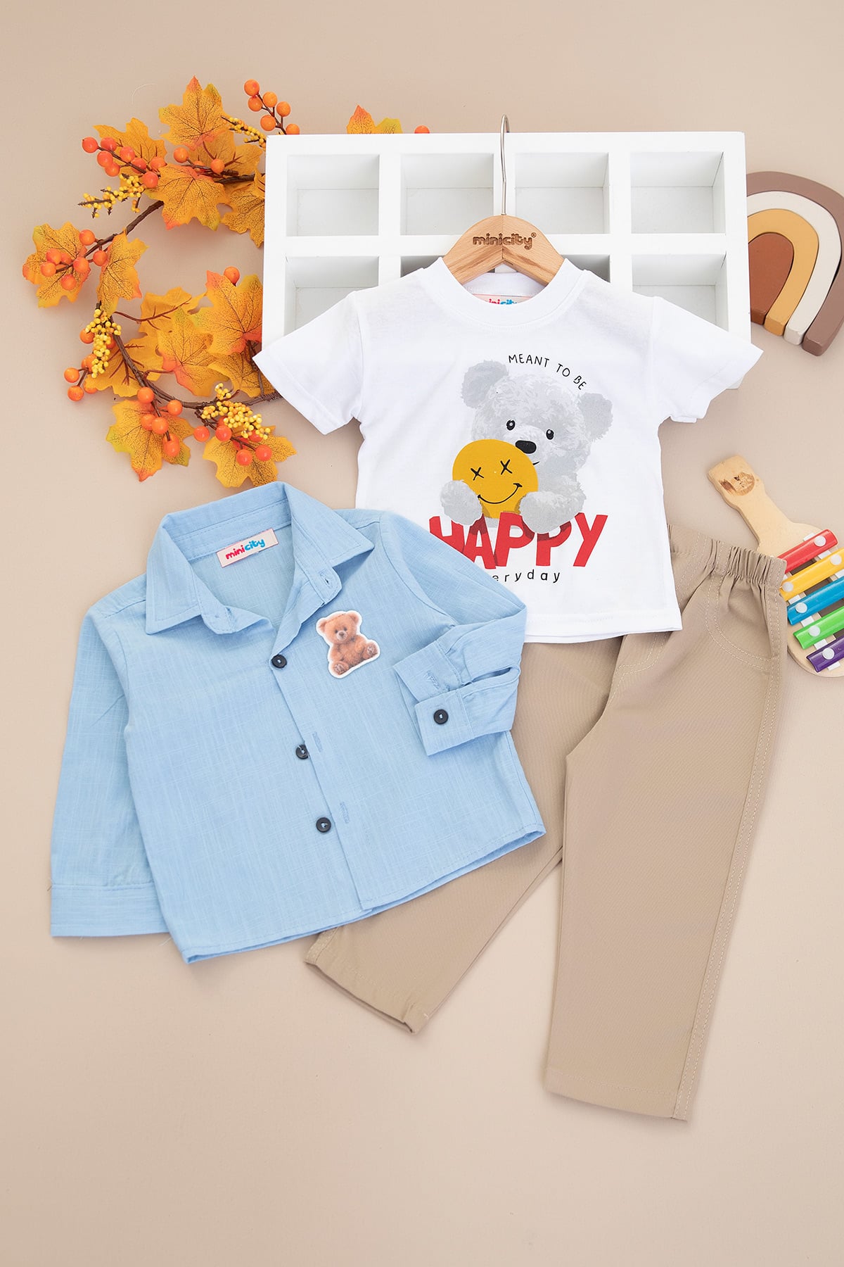 Erkek Çocuk Ayıcıklı Keten Üçlü Takım - 25-077 (1-3 Yaş)