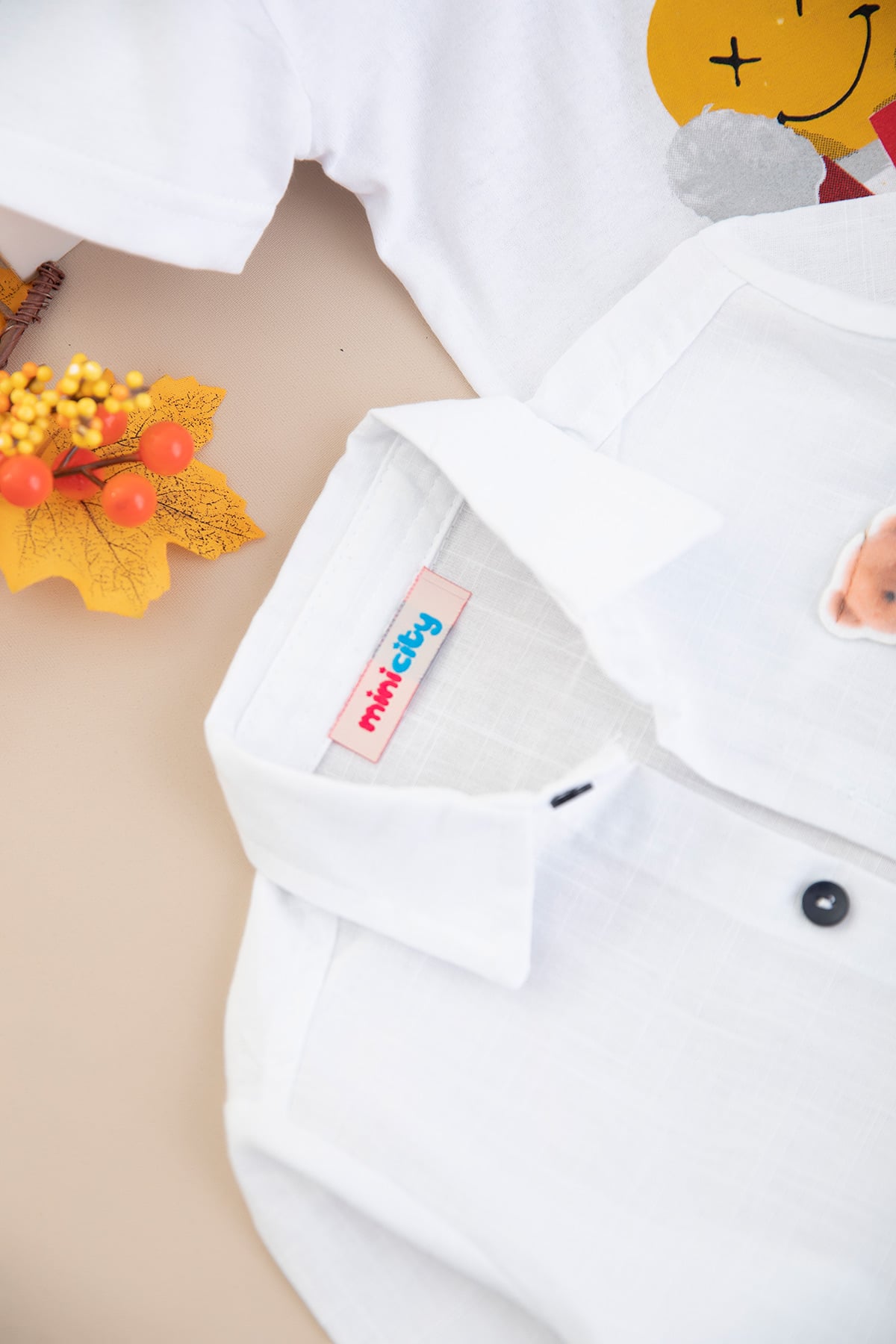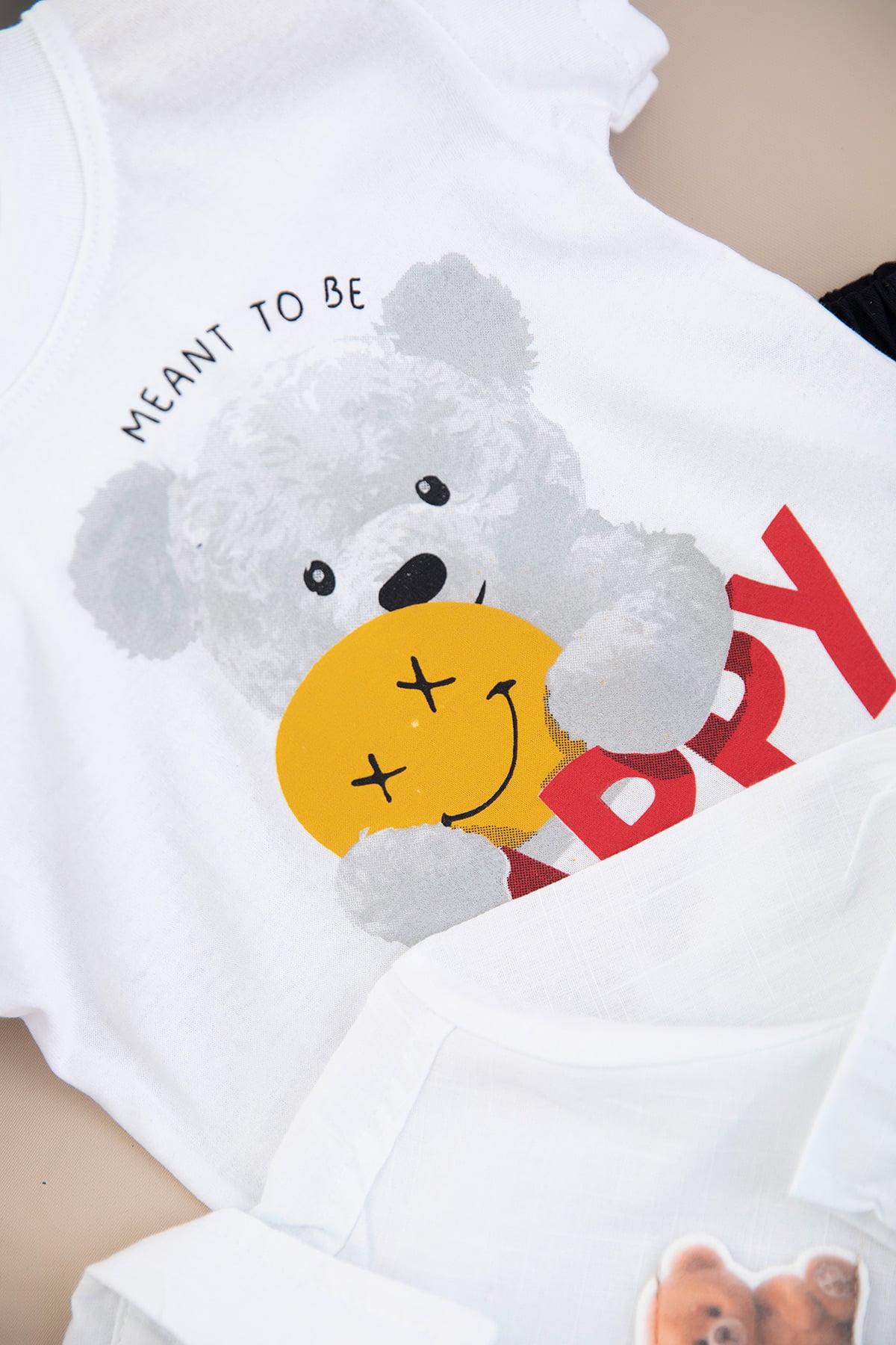 Erkek Çocuk Ayıcıklı Keten Üçlü Takım - 25-078 (4-6 Yaş)