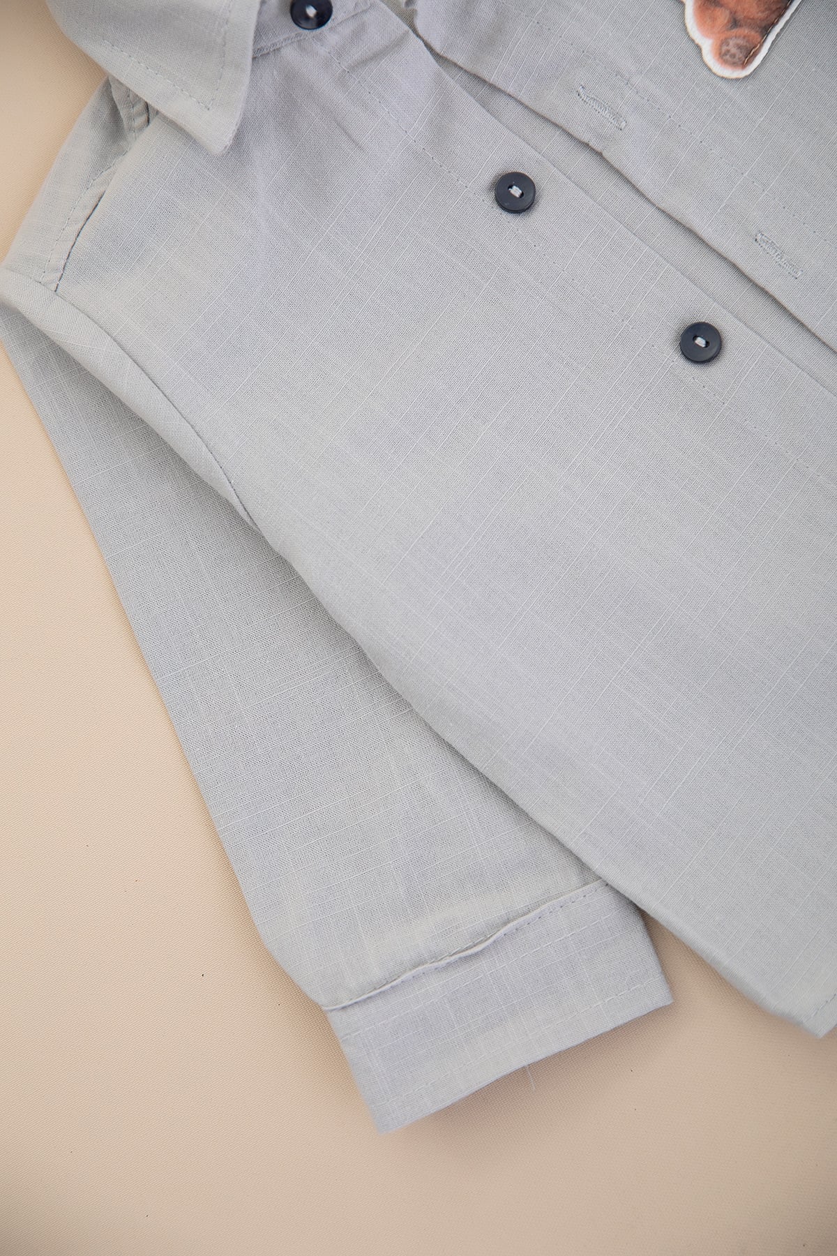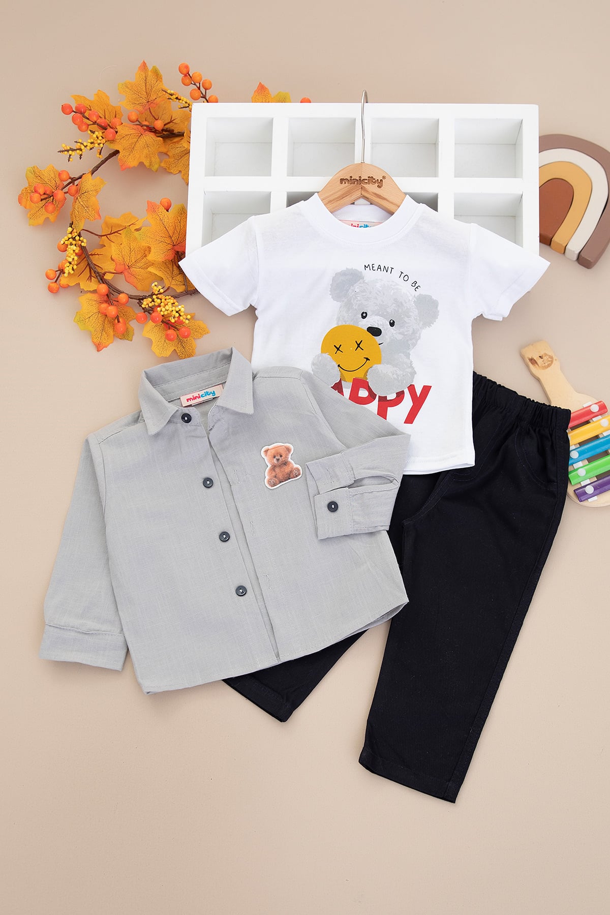 Erkek Çocuk Ayıcıklı Keten Üçlü Takım - 25-078 (4-6 Yaş)