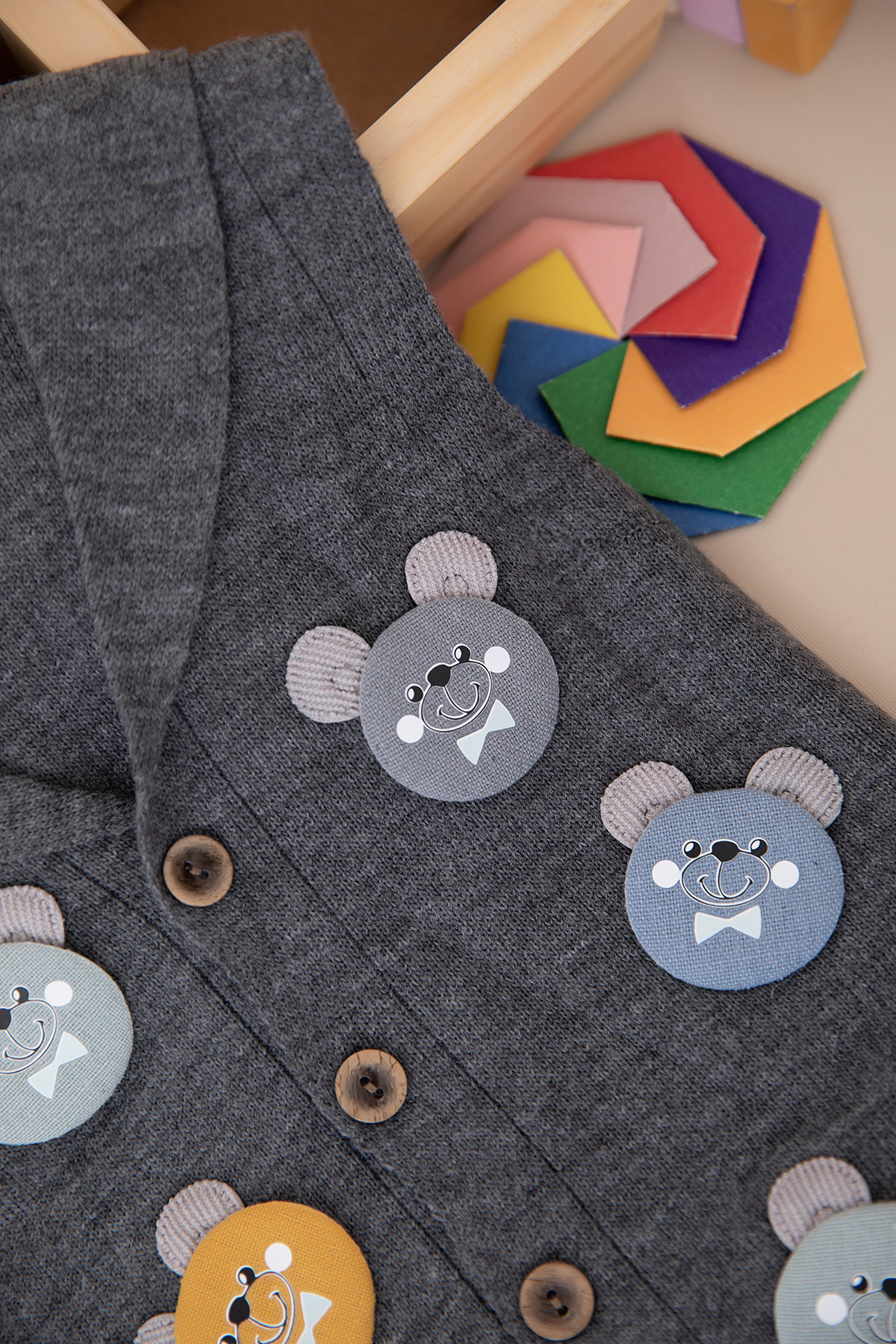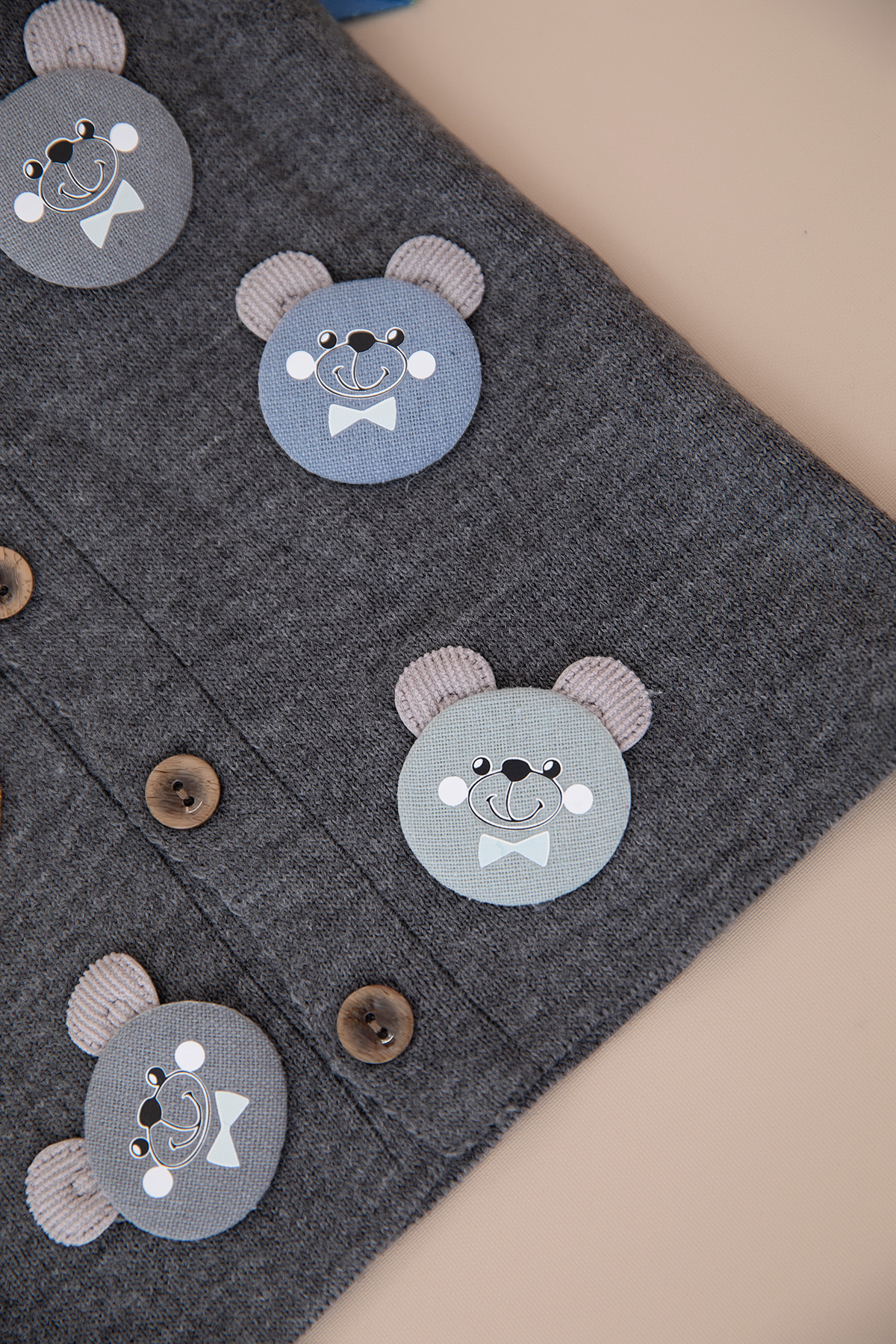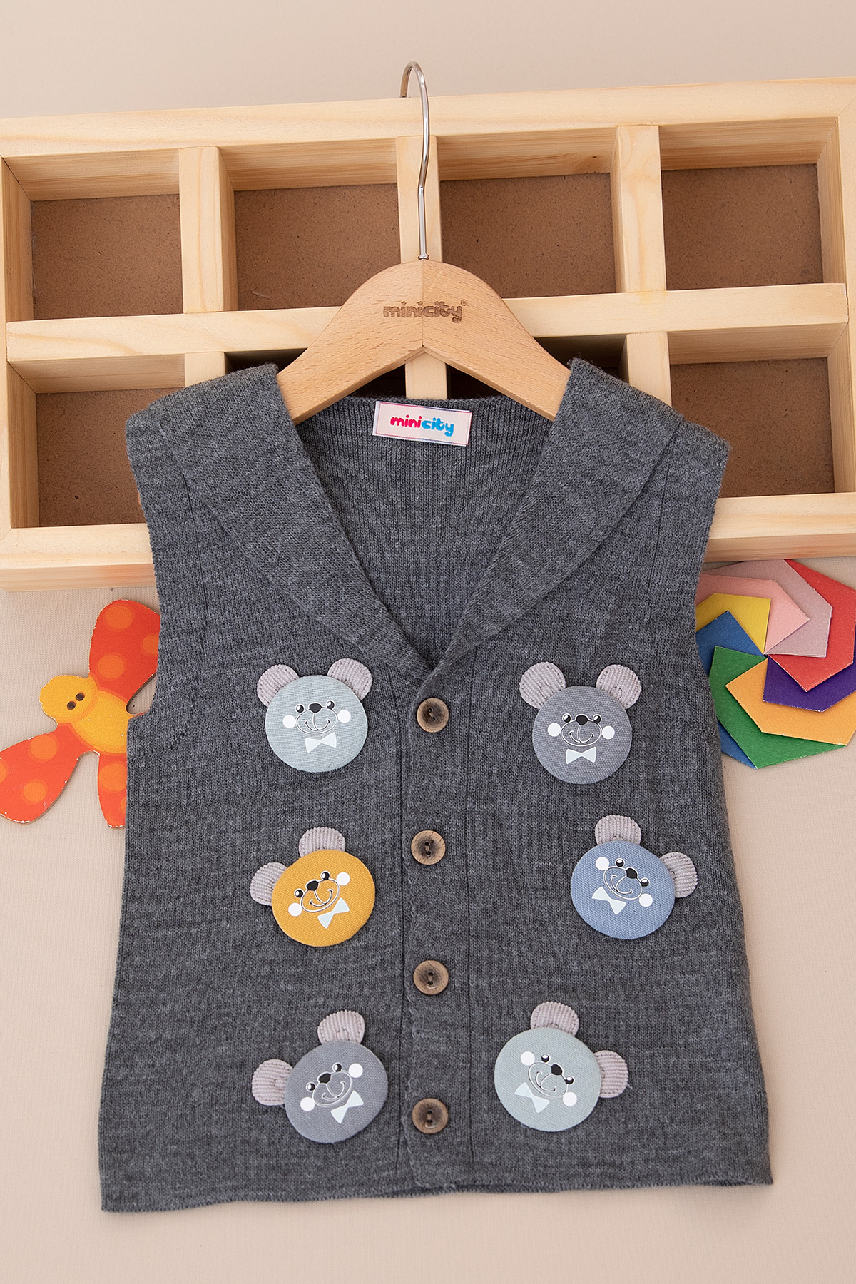 Erkek Çocuk Ayılı Ata Yaka Triko Yelek - 505 (1-5 Yaş)