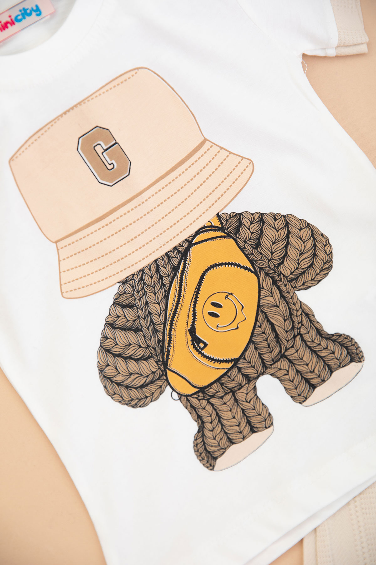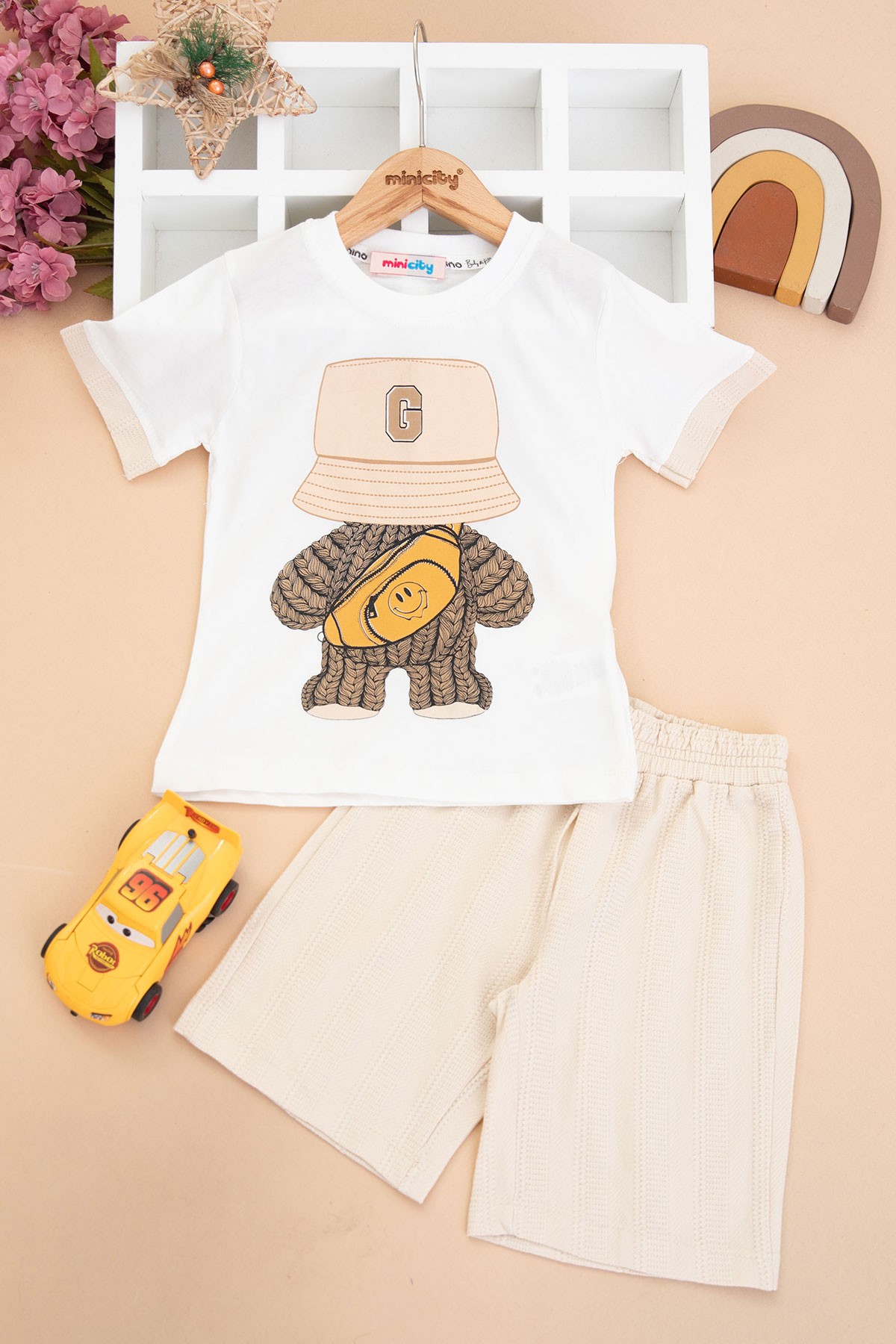 Erkek Çocuk Ayılı G Baskılı Şortlu Takım - 40962 (2-5 Yaş)