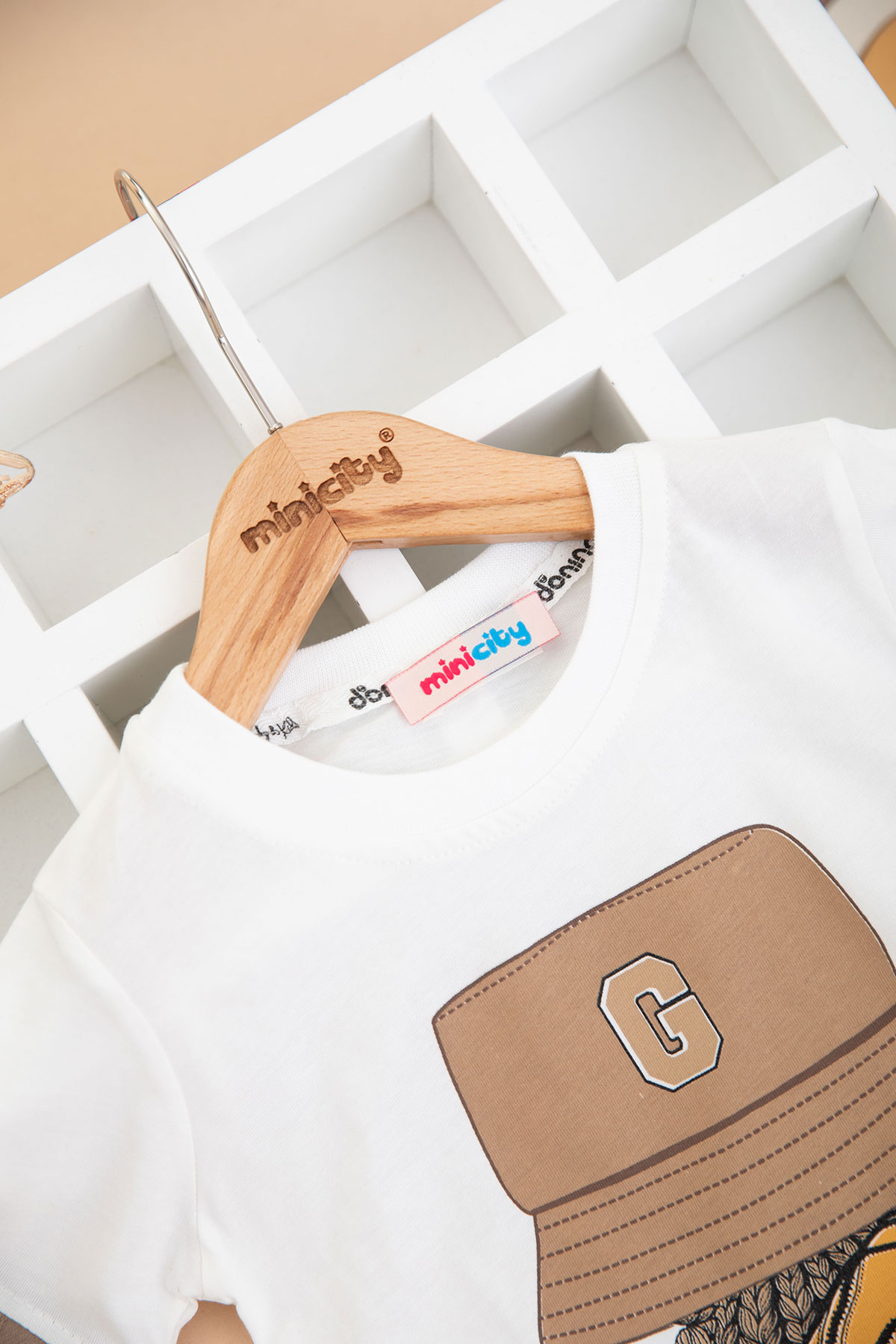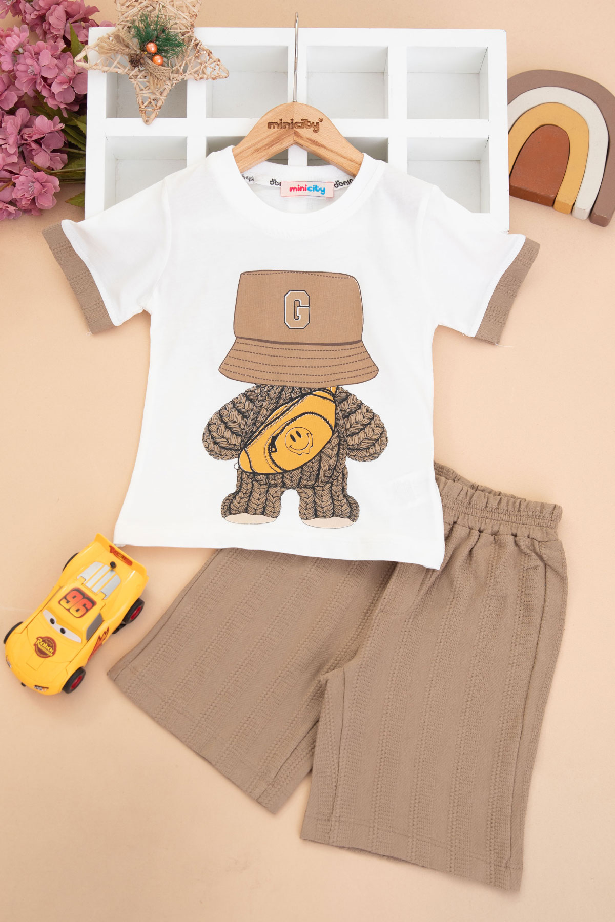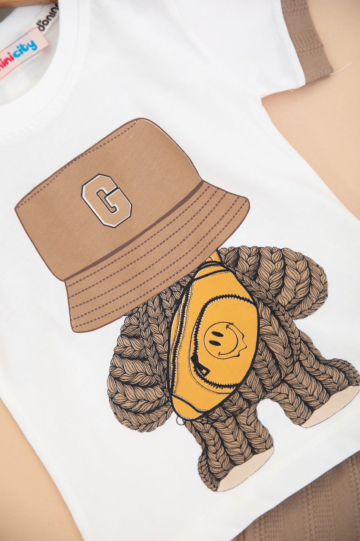 Erkek Çocuk Ayılı G Baskılı Şortlu Takım - 40962 (2-5 Yaş)