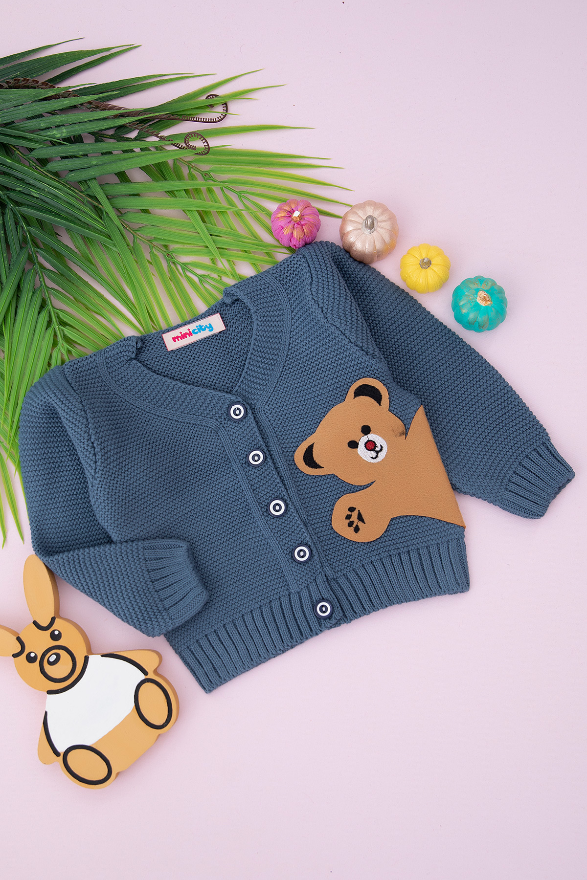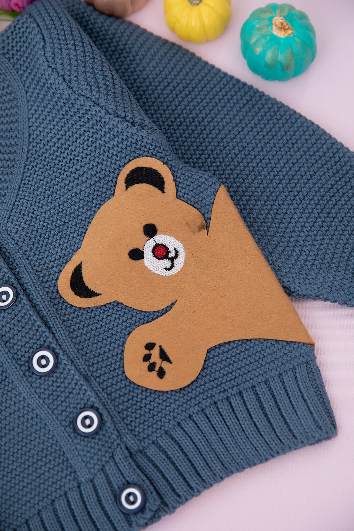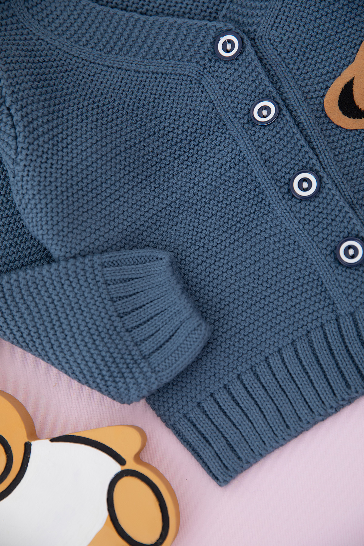 Erkek Çocuk Ayılı Triko Hırka - 0906 (1-5 Yaş)