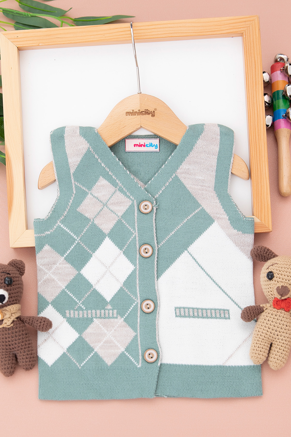 Erkek Çocuk Baklavalı Triko Yelek - 0446 (1-5 Yaş)