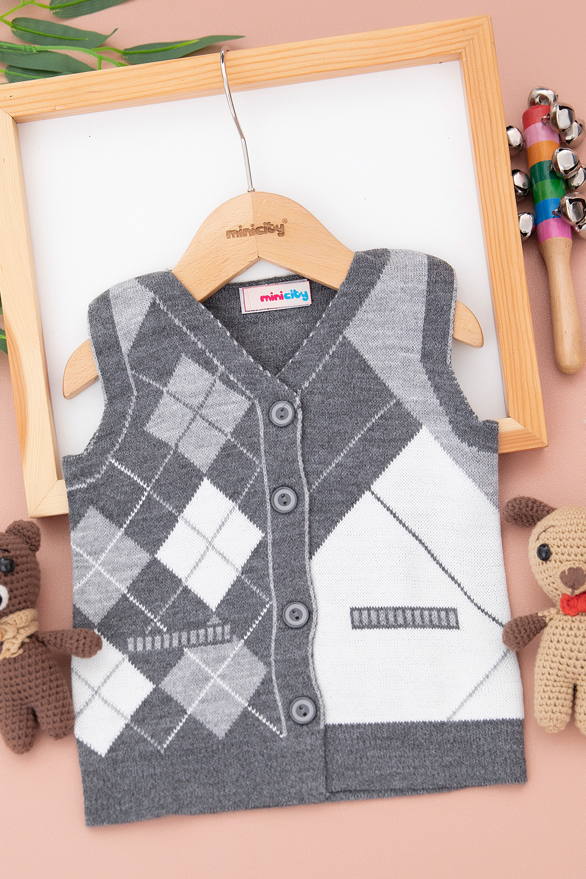 Erkek Çocuk Baklavalı Triko Yelek - 0446 (1-5 Yaş)