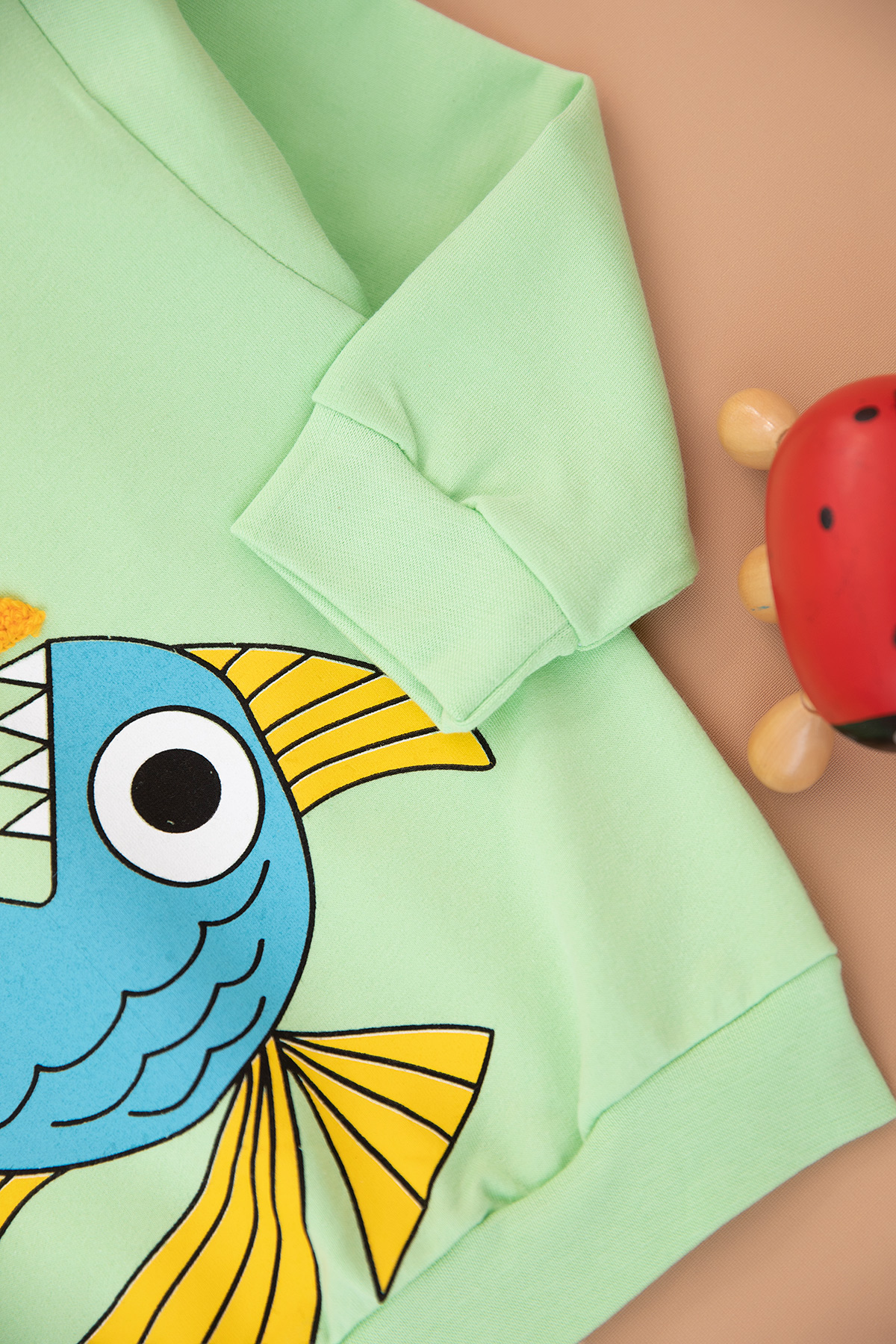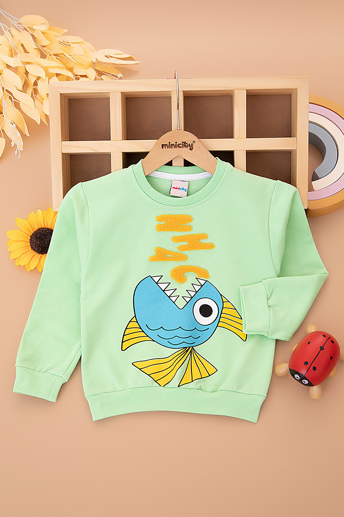 Erkek Çocuk Balık Baskılı Mevsimlik Sweat (8-12 Yaş)