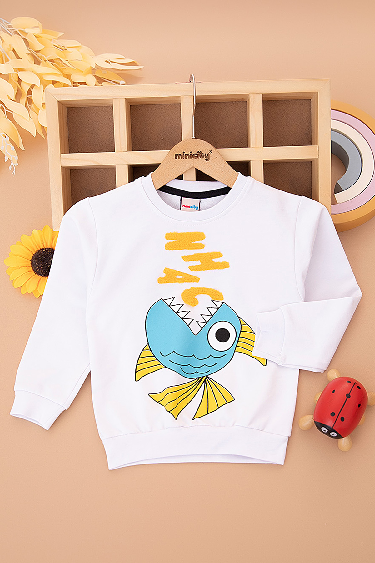 Erkek Çocuk Balık Baskılı Mevsimlik Sweat (8-12 Yaş)