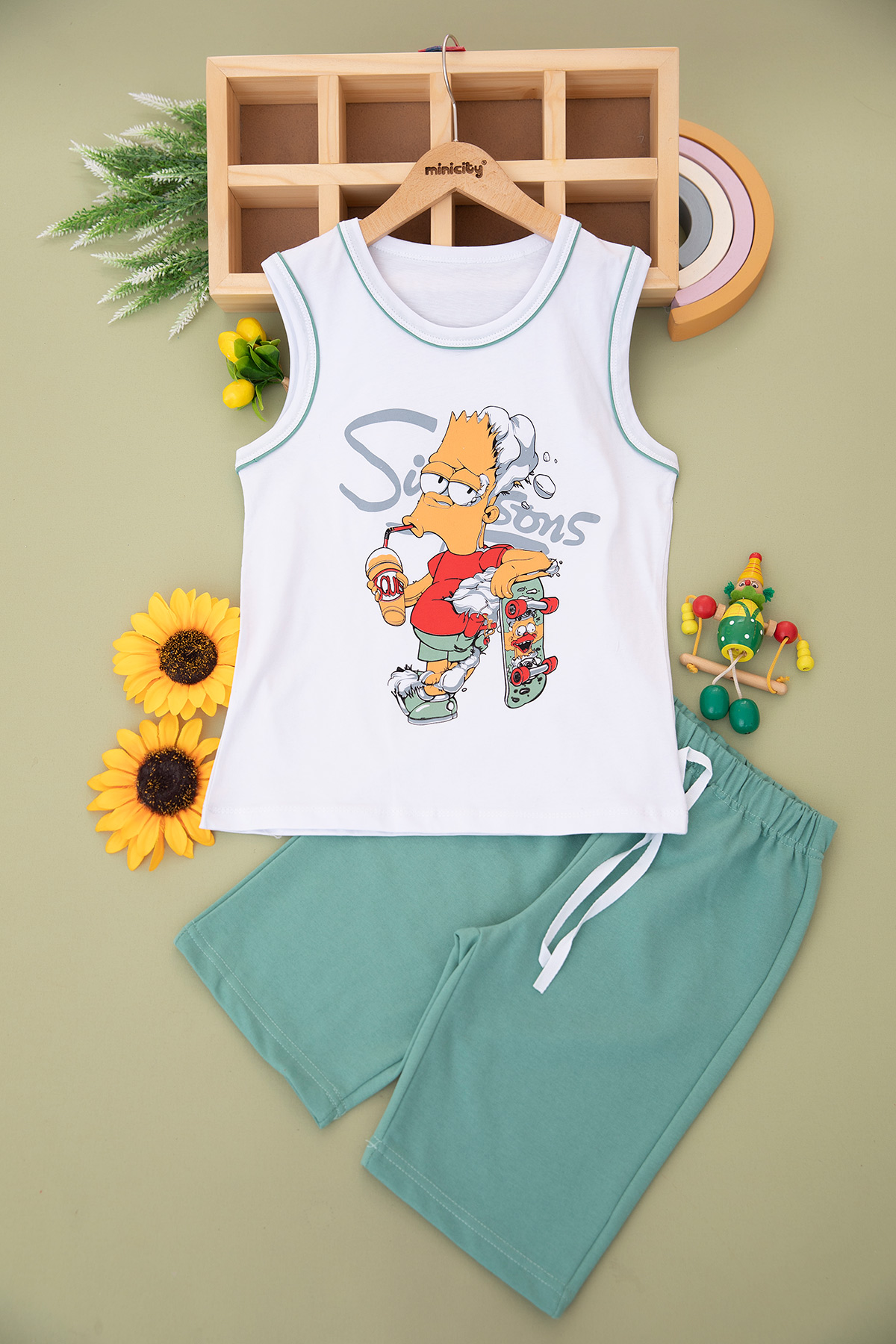Erkek Çocuk Baskılı Askılı Şort Takım (9-12 Yaş)