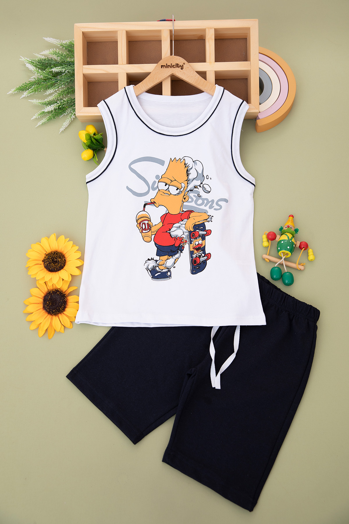 Erkek Çocuk Baskılı Askılı Şort Takım (9-12 Yaş)