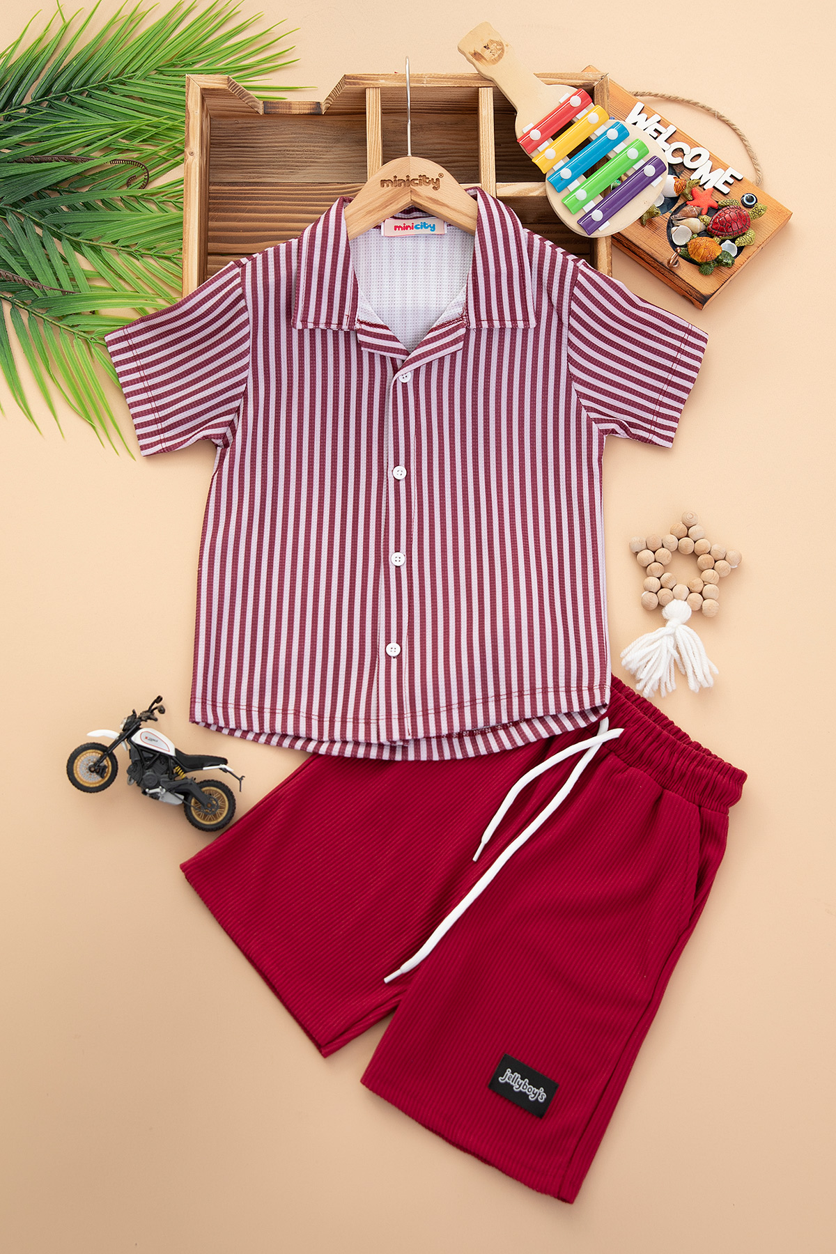 Erkek Çocuk Baskılı Gömlek Şort Takım - K-0006 (3-12 Yaş)