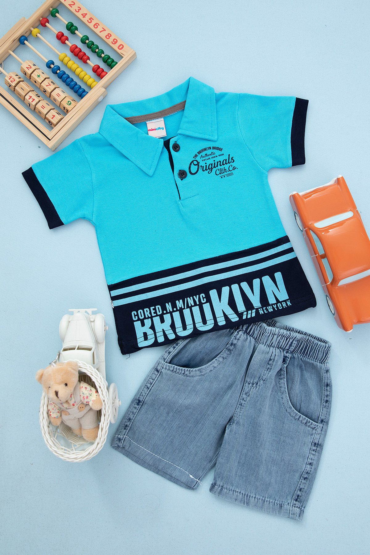 Erkek Çocuk Baskılı Kot Şortlu Takım - 315 (1-3 Yaş)