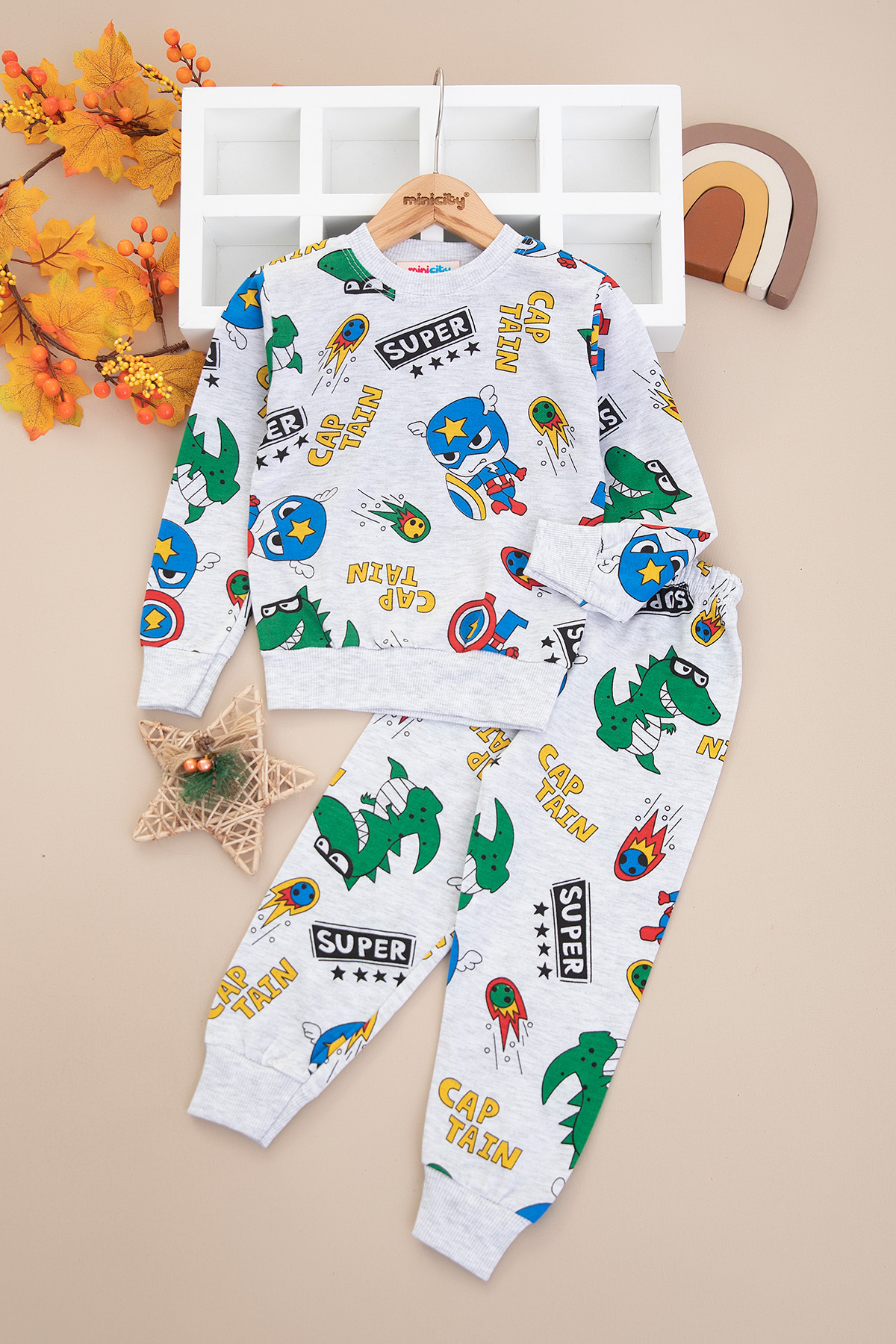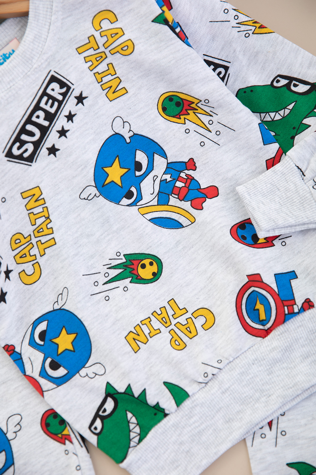 Erkek Çocuk Baskılı Şardonlu Pijama Takımı (3-7 Yaş)