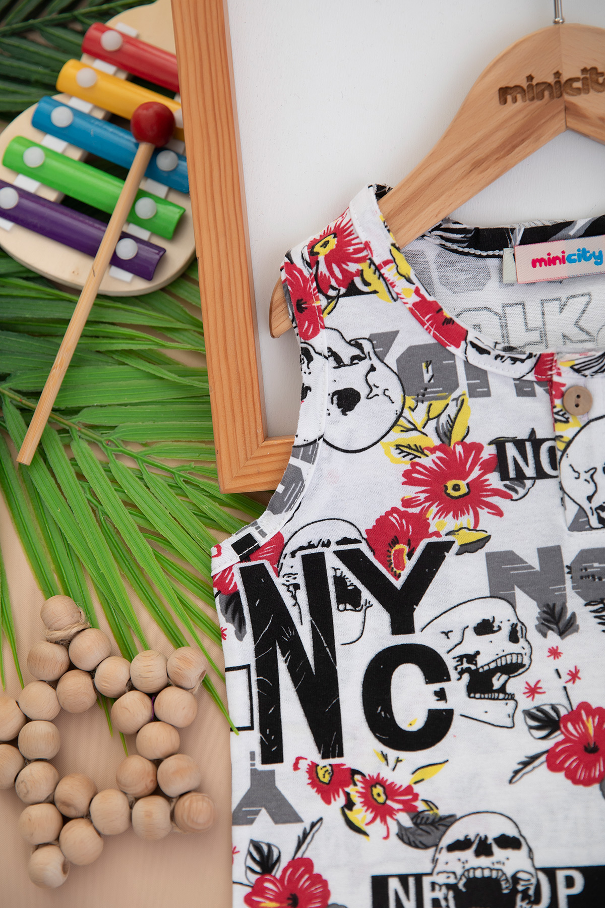 Erkek Çocuk Baskılı Sıfır Kol T-Shirt - 5260 (1-5 Yaş)