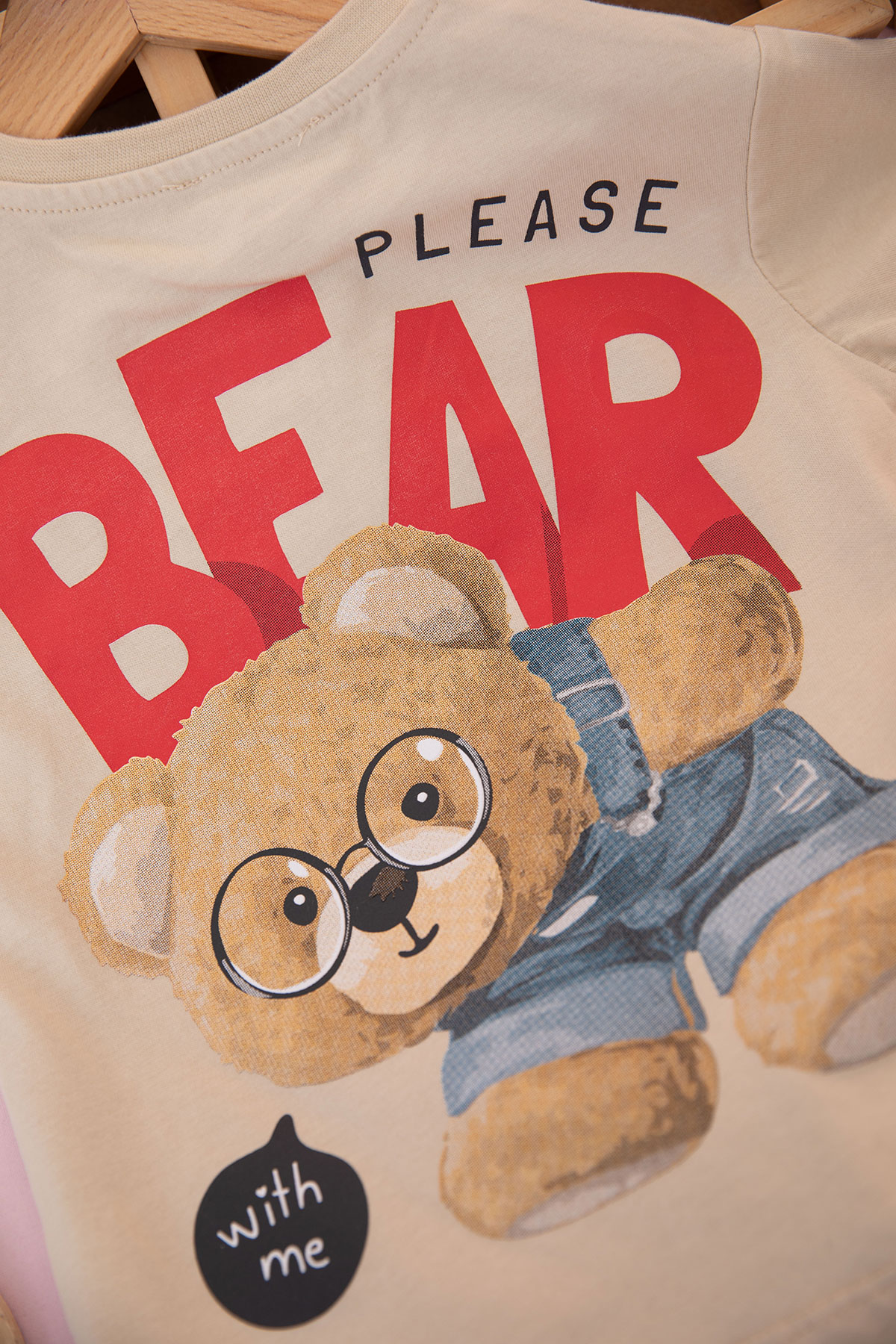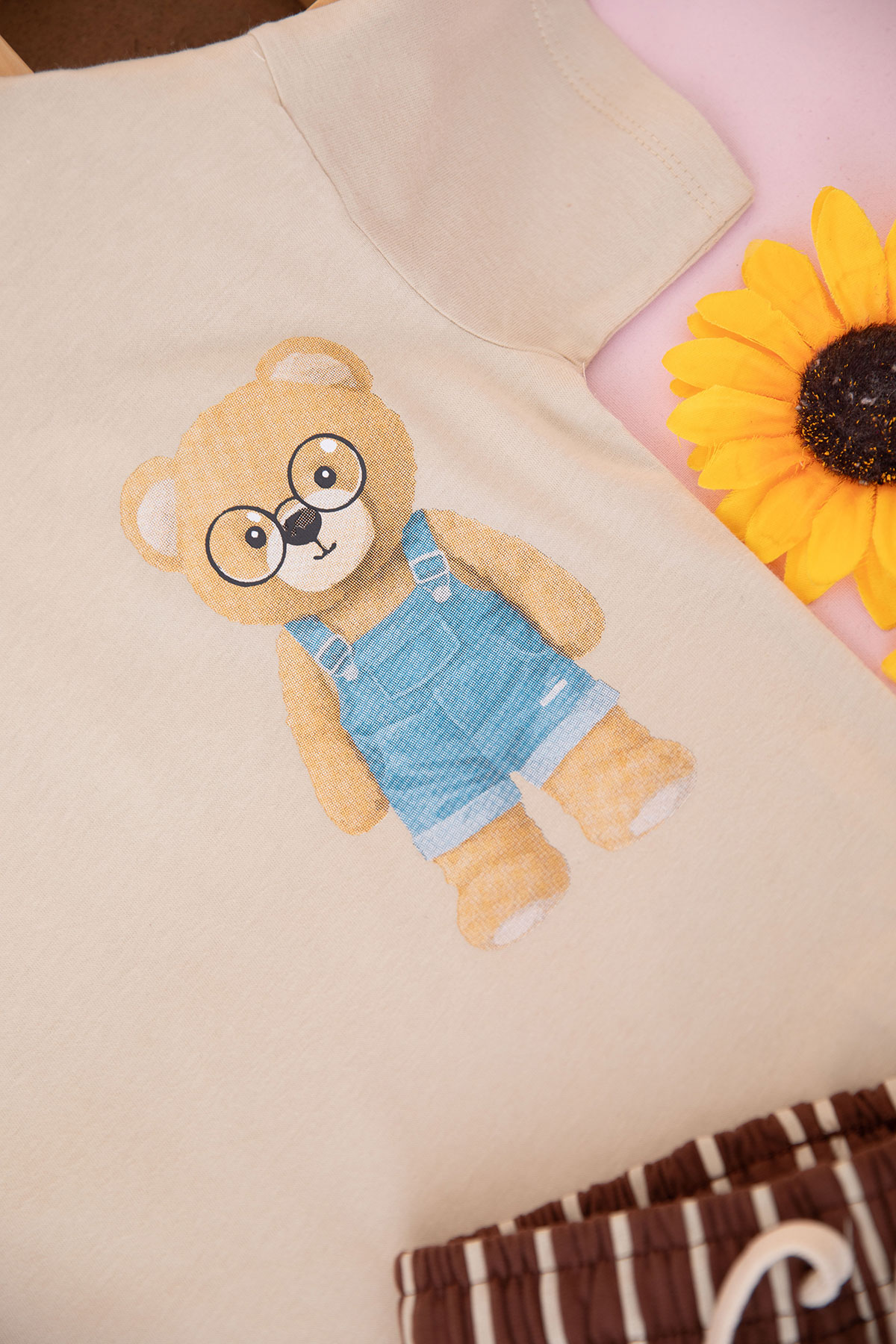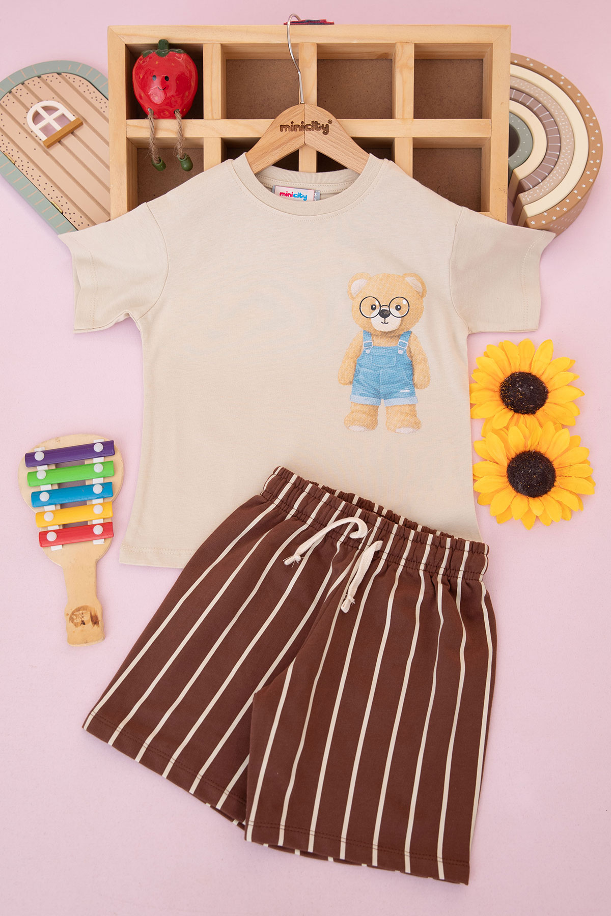 Erkek Çocuk Bear Baskılı Çizgili Şortlu Takım - 5464 (2-8 Yaş)