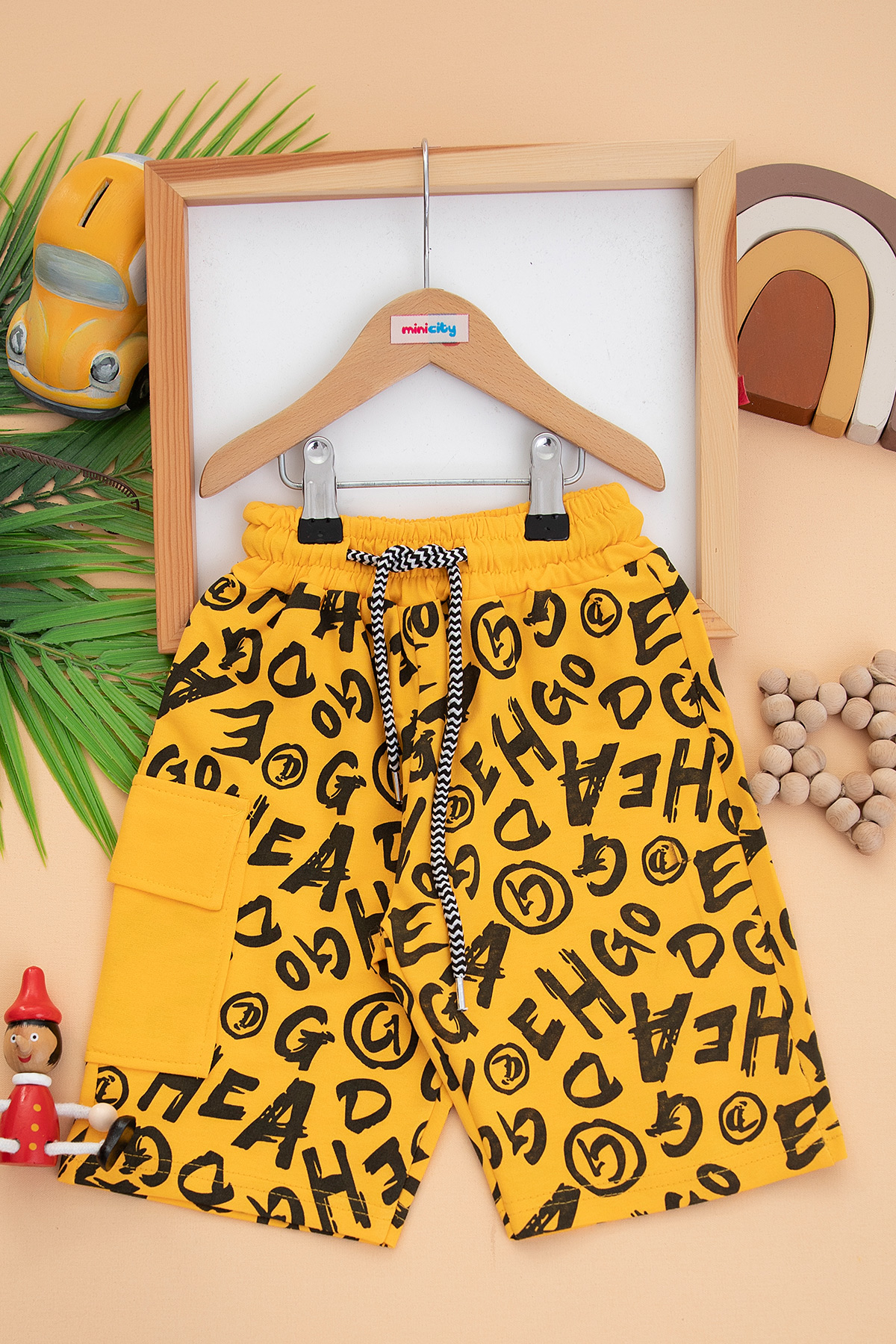 Erkek Çocuk Boya Baskılı Kanguru Cepli Kapri - 1167 (5-12 Yaş)