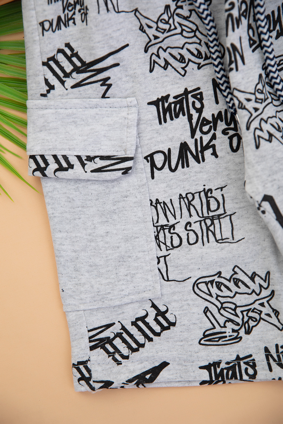 Erkek Çocuk Boya Baskılı Kanguru Cepli Kapri - 1167 (5-12 Yaş)