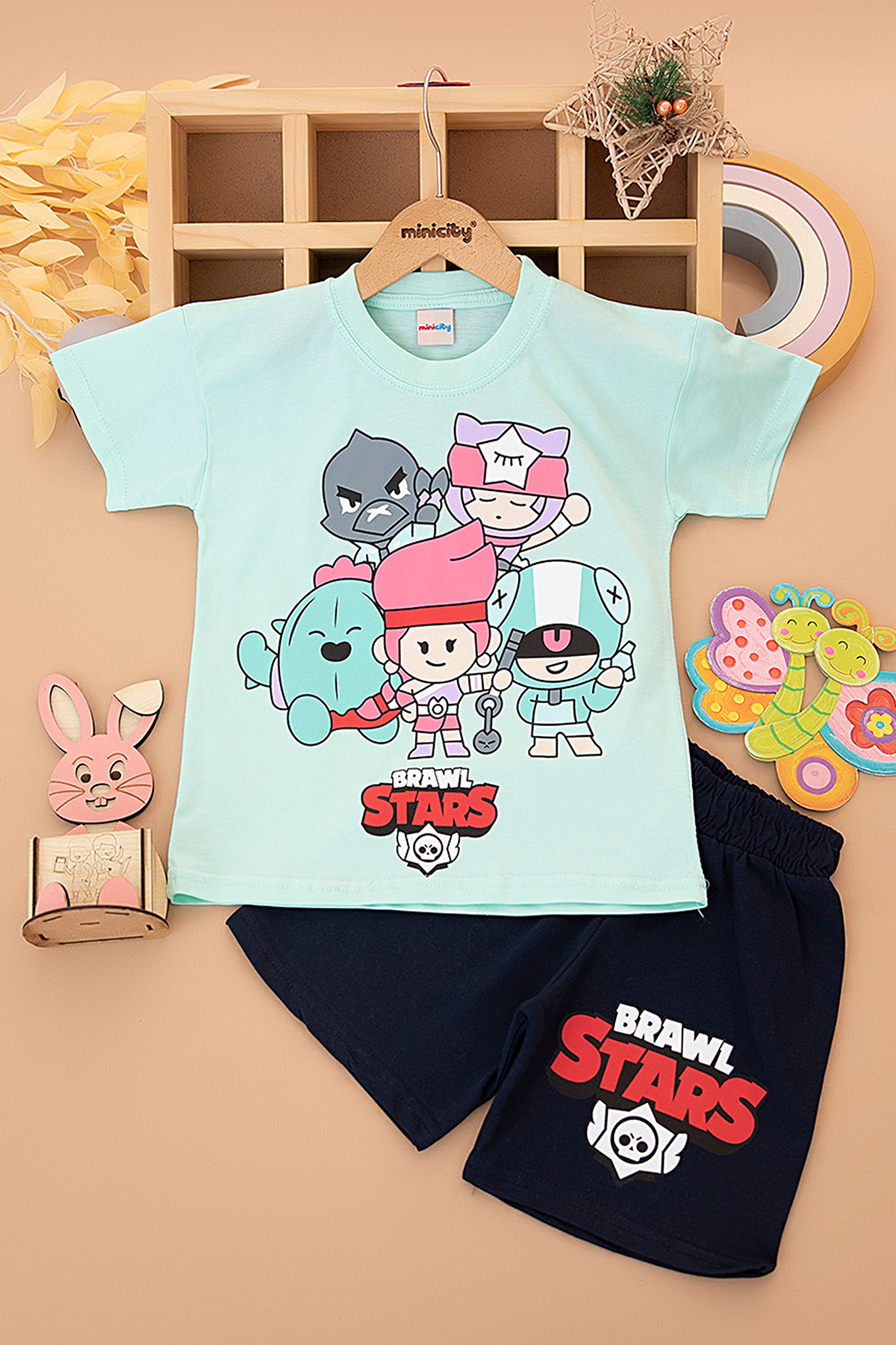 Erkek Çocuk Brawl Stars Baskılı Şortlu Takım (4-10 Yaş)